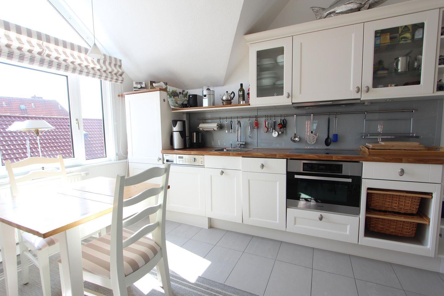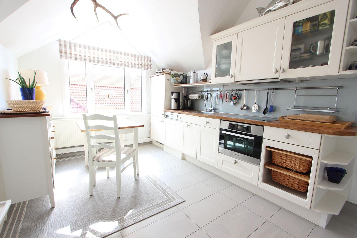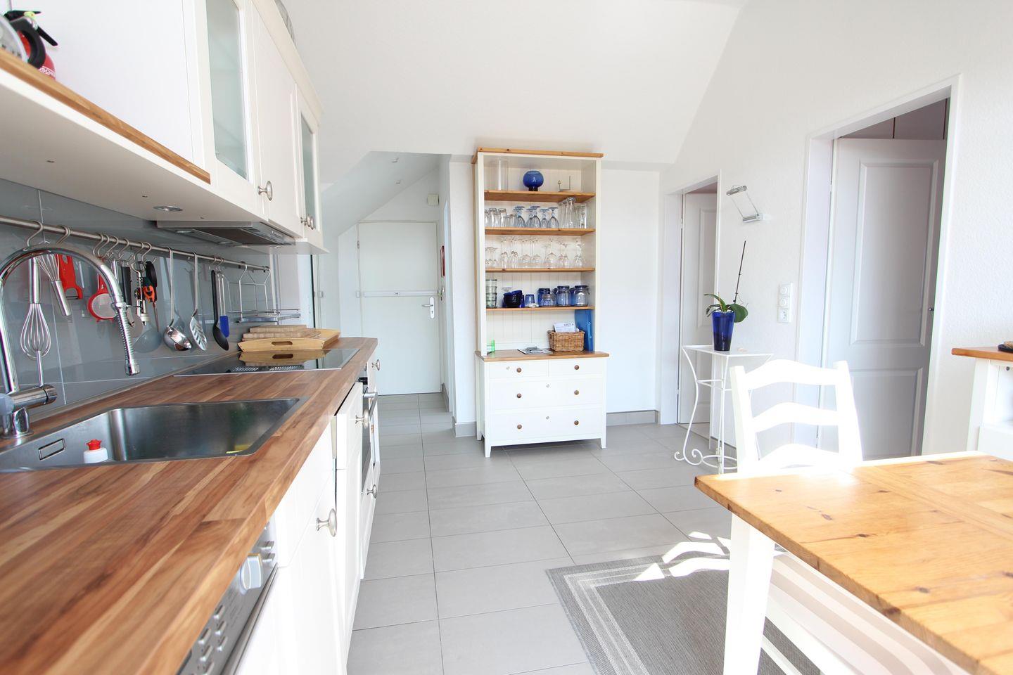 Separate Küche mit Ceran-Kochfeld, Backofen, Geschirrspüler, Waschmaschine mit Trockner, Esstisch,