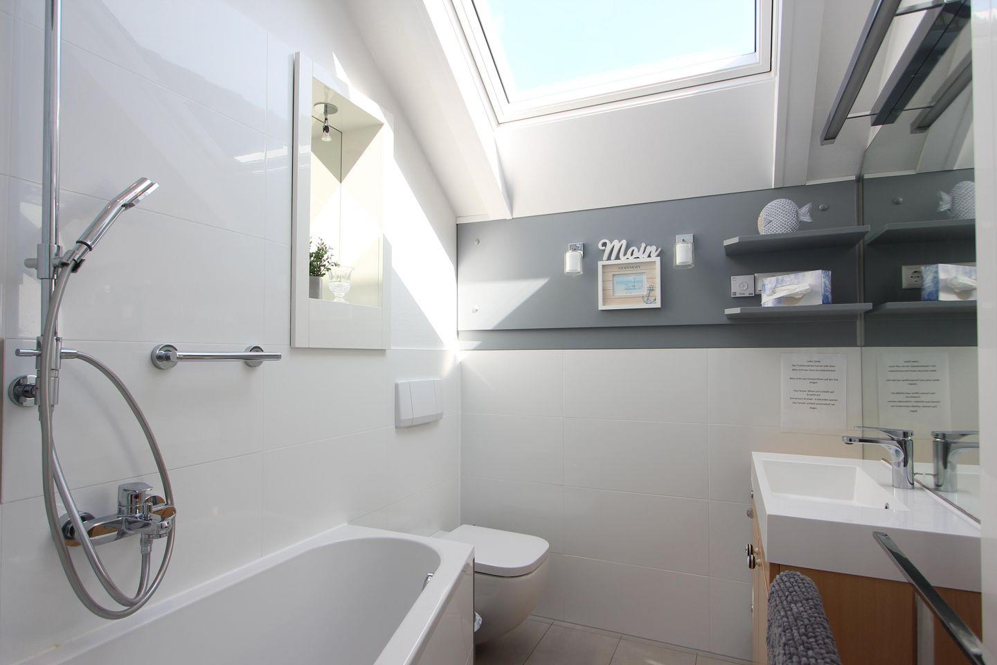 Badezimmer mit Dusch-Badewanne, Fußbodenheizung