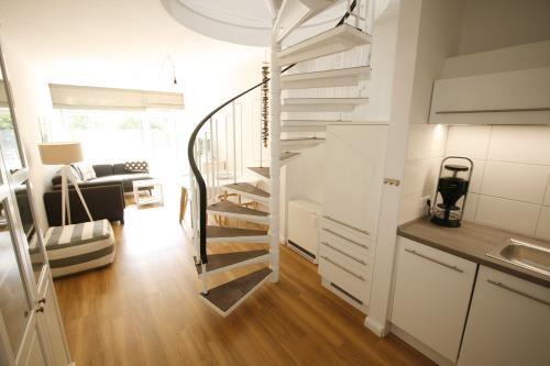 Das Reihenhäuschen "Seetörn 9“ mit ca. 58 m² auf 2 Etagen liegt in einer ruhigen Sackgasse, der Herrmann-Löns-Straße. Alle Zimmer wurden 2016 renoviert u. mit neuen Möbeln im skandinavischen Stil ausgestattet. Im EG befindet sich ein großzügiger Wohnraum mit einladendem Sofa, Flat-Screen und Essbereich. Aus dem Wohnraum gelangt man auf die hauseigene Terrasse mit Sitzgelegenheiten und in den Garten. Die Küche mit Kühlschrank, Backofen, Cerankochfeld, Geschirrspülmaschine sowie Kaffeemaschine, Wasserkocher und Toaster wird durch die Wendeltreppe vom Wohnraum abgeteilt. Weiterhin befinden sich im EG ein kleiner Flur sowie das Gäste-WC.
