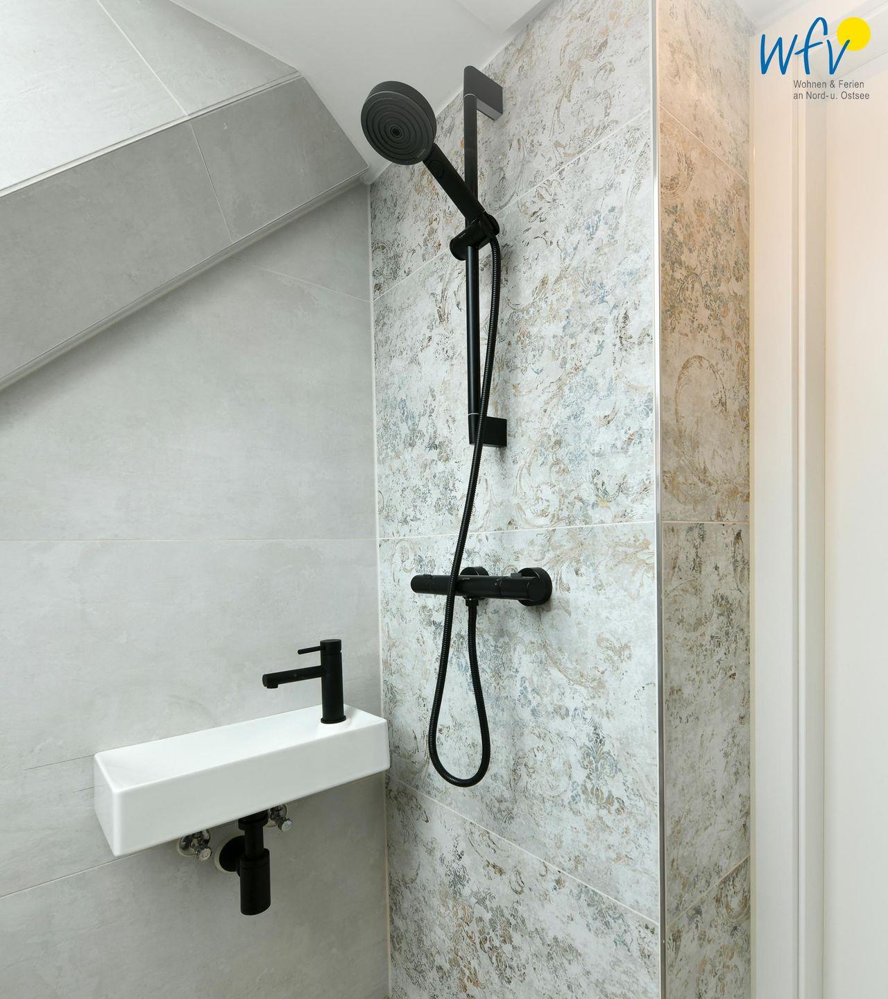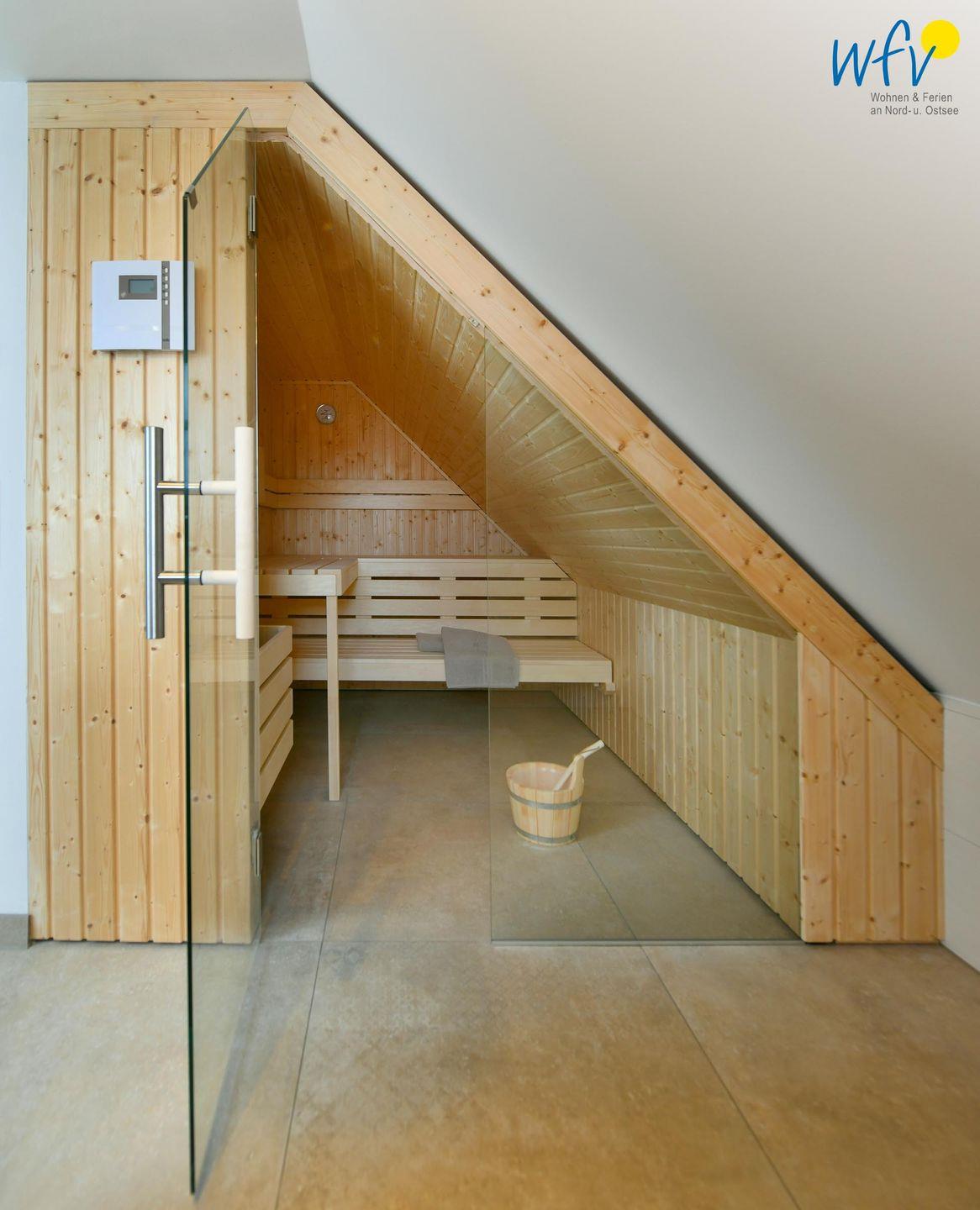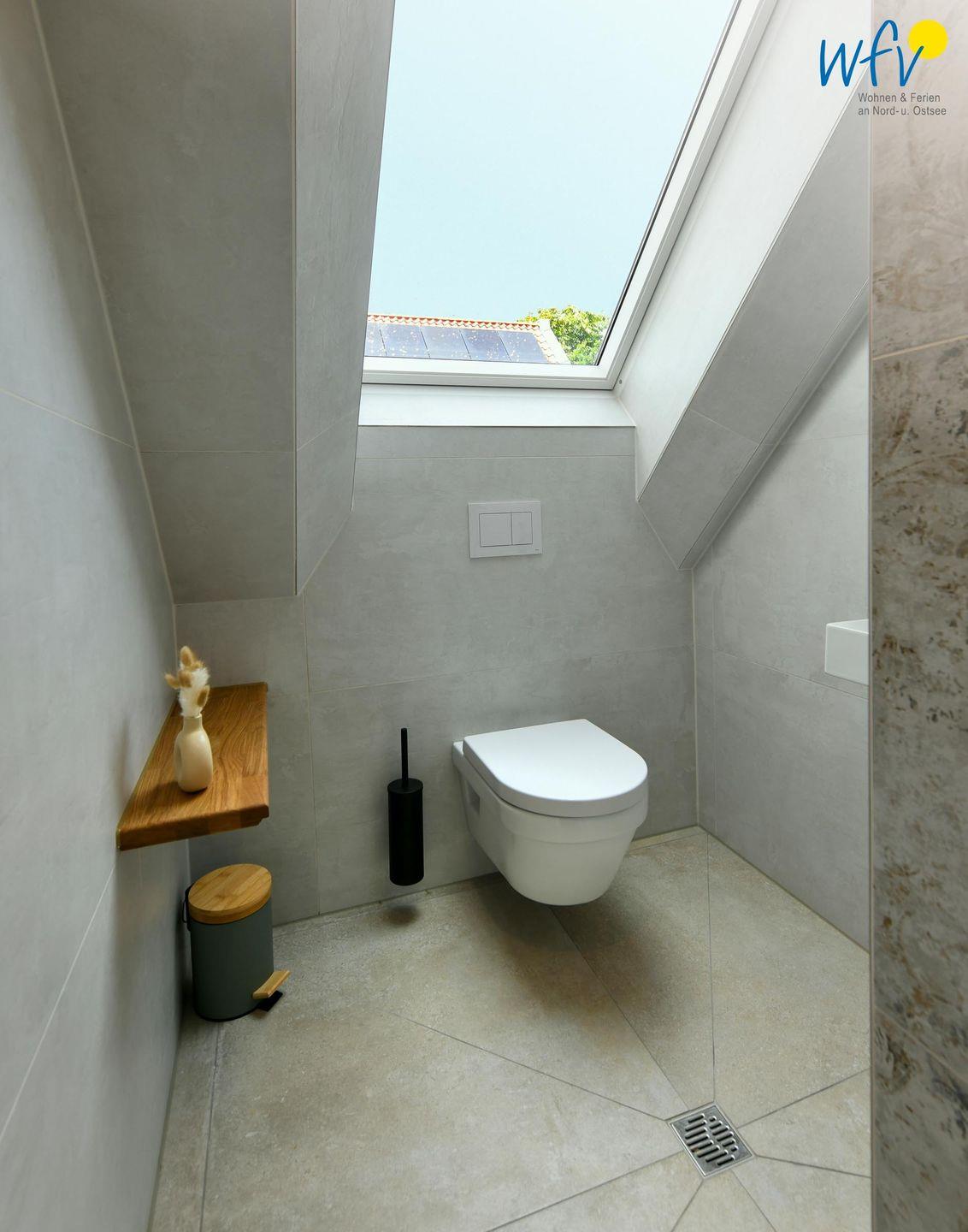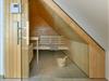 Ein Gäste-WC (DG) und ein elegantes Tageslichtbad im Spitzboden sorgen für angenehme Ausweichmöglichkeiten. In dem Tageslichtbad mit eigener Sauna und offenem Duschbereich genießen Sie wohltuende Entspannungszeit.