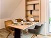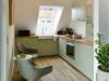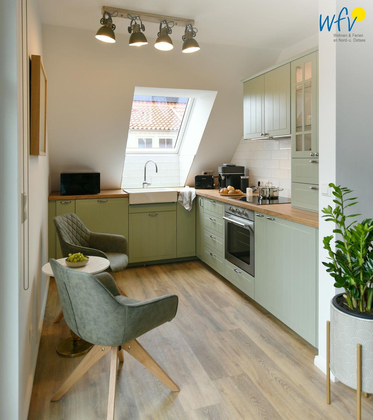 Die Maisonette-Ferienwohnung verfügt über ein modernes, offenes Wohnkonzept über zwei Etagen, das für ein weites Raumgefühl sorgt. Im Dachgeschoss sind Wohnbereich und Küche harmonisch miteinander verbunden, sodass Sie hier nach dem Strandtag oder der Fahrradtour gemütliche Abende auf dem bequemen Sofa verbringen, fernsehen und lesen können oder das gemeinsame Kochen genießen. Für kulinarische Erlebnisse ist die moderne Küche mit einem 4-Platten-Induktionsherd, einem Backofen, einer Mikrowelle, einem Kühlschrank mit Gefrierfach sowie einer Spülmaschine ausgestattet. Der angrenzende Wohnbereich lädt zu gemeinsamen Mahlzeiten ein.