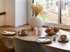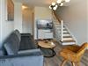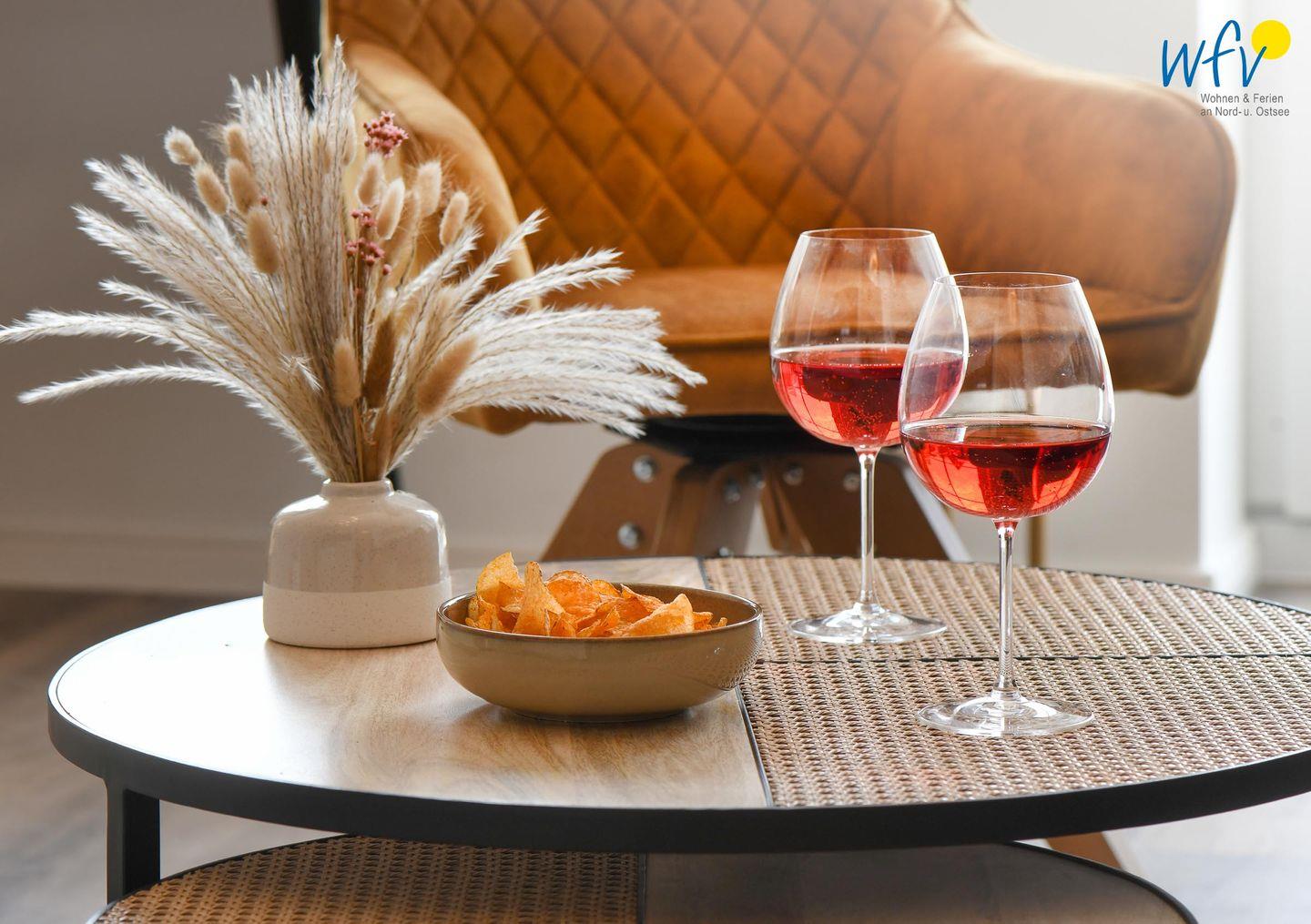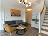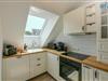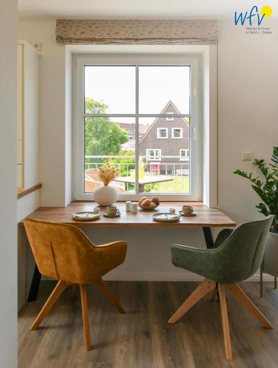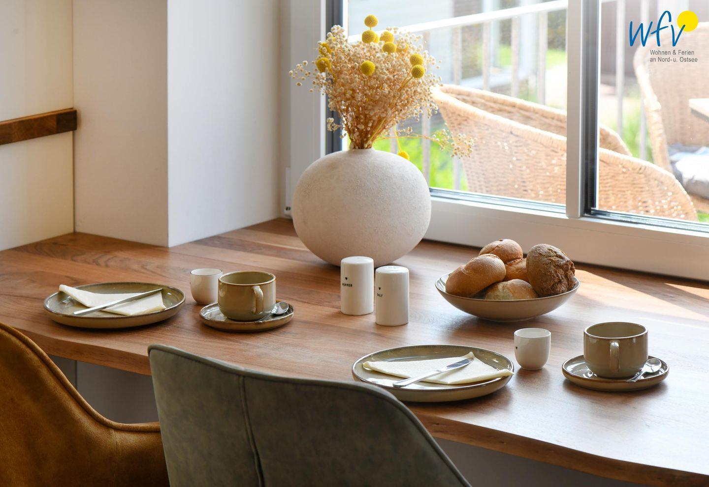 Die Maisonette-Ferienwohnung verfügt über ein modernes, offenes Wohnkonzept über zwei Etagen, das für ein weites Raumgefühl sorgt. Im Dachgeschoss sind Wohnbereich und Küche harmonisch miteinander verbunden, sodass Sie hier nach dem Strandtag oder der Fahrradtour gemütliche Abende auf dem bequemen Sofa verbringen, fernsehen und lesen können oder das gemeinsame Kochen genießen. Für kulinarische Erlebnisse ist die moderne Küche mit einem 4-Platten-Induktionsherd, einem Backofen, einer Mikrowelle, einem Kühlschrank mit Gefrierfach sowie einer Spülmaschine ausgestattet. Der angrenzende Essbereich lädt zu gemeinsamen Mahlzeiten ein.