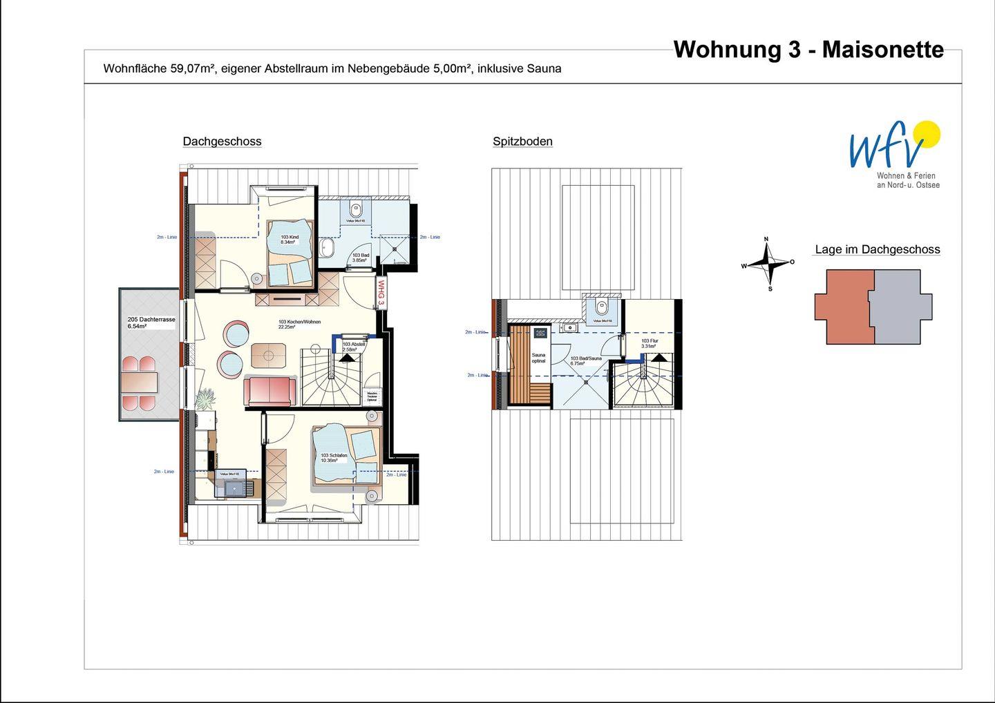Entdecken Sie die luxuriöse und strandnahe "Ferienwohnung Watt`n Utkiek" im "Haus Christine" auf Langeoog. Diese elegante Unterkunft bietet auf 59 m² Platz für bis zu 4 Personen und ist ideal für Familien oder romantische Auszeiten. Genießen Sie exklusive Annehmlichkeiten wie offenes Wohnen, zwei separate Schlafzimmer und eine hübsche Dachterrasse für wohltuende Nordseeluft. Zwei Tageslichtbäder - u.a. mit eigener Sauna - runden das luxuriöse Ambiente ab. Erleben Sie unvergessliche Urlaubsmomente!