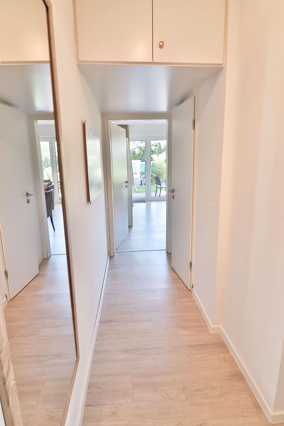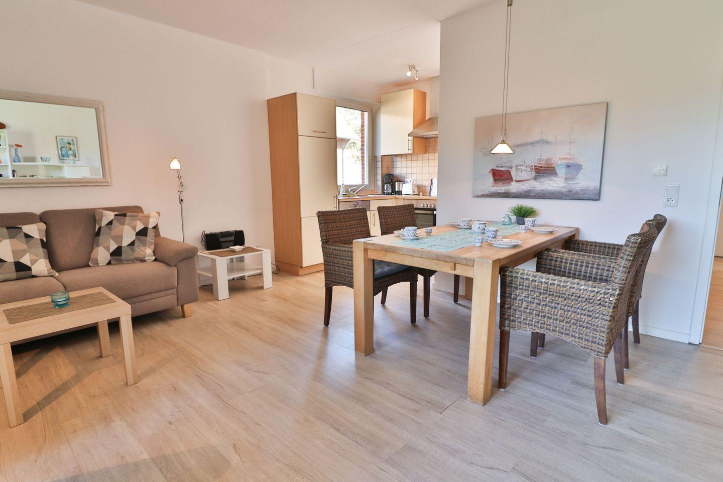 Haus Winter – Wohnung 2 bietet Ihnen auf ca. 65 m² eine komfortable Unterkunft im Erdgeschoss eines zentral gelegenen Hauses auf der beliebten Nordseeinsel Langeoog. Die Ferienwohnung ist sorgfältig ausgestattet und besticht durch ihre zeitgemäße und zugleich gemütliche Atmosphäre, die sowohl Familien als auch Einzelreisende oder Paare anspricht. Mit insgesamt drei Zimmern und zwei separaten Schlafzimmern, eines mit einem Doppelbett (180 x 190 cm) und das andere mit zwei Einzelbetten (100 x 200 cm und 90 x 200 cm) ausgestattet, finden bis zu vier Gäste bequem Platz.