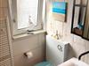 Die erfrischende Dusche nach dem Strandtag genießen Sie im kleinen, aber komfortablen Tageslichtbad mit Handtuchheizung, Föhn und Waschtisch. Auch diesem Raum verleiht die charmante und maritime Einrichtung ein besonderes Urlaubsflair.