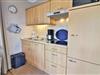 Die Küchenzeile, die in das Wohnzimmer integriert ist, stellt eine vollständige Ausstattung für entspannte Selbstversorgung bereit: Ein 4-Platten-Herd, Spülmaschine, Mikrowelle, Kühlschrank mit Gefrierfach, Wasserkocher, Eierkocher, Kaffeemaschine, Toaster, ein Handmixer sowie Geschirr und Küchenutensilien sind vorhanden.
