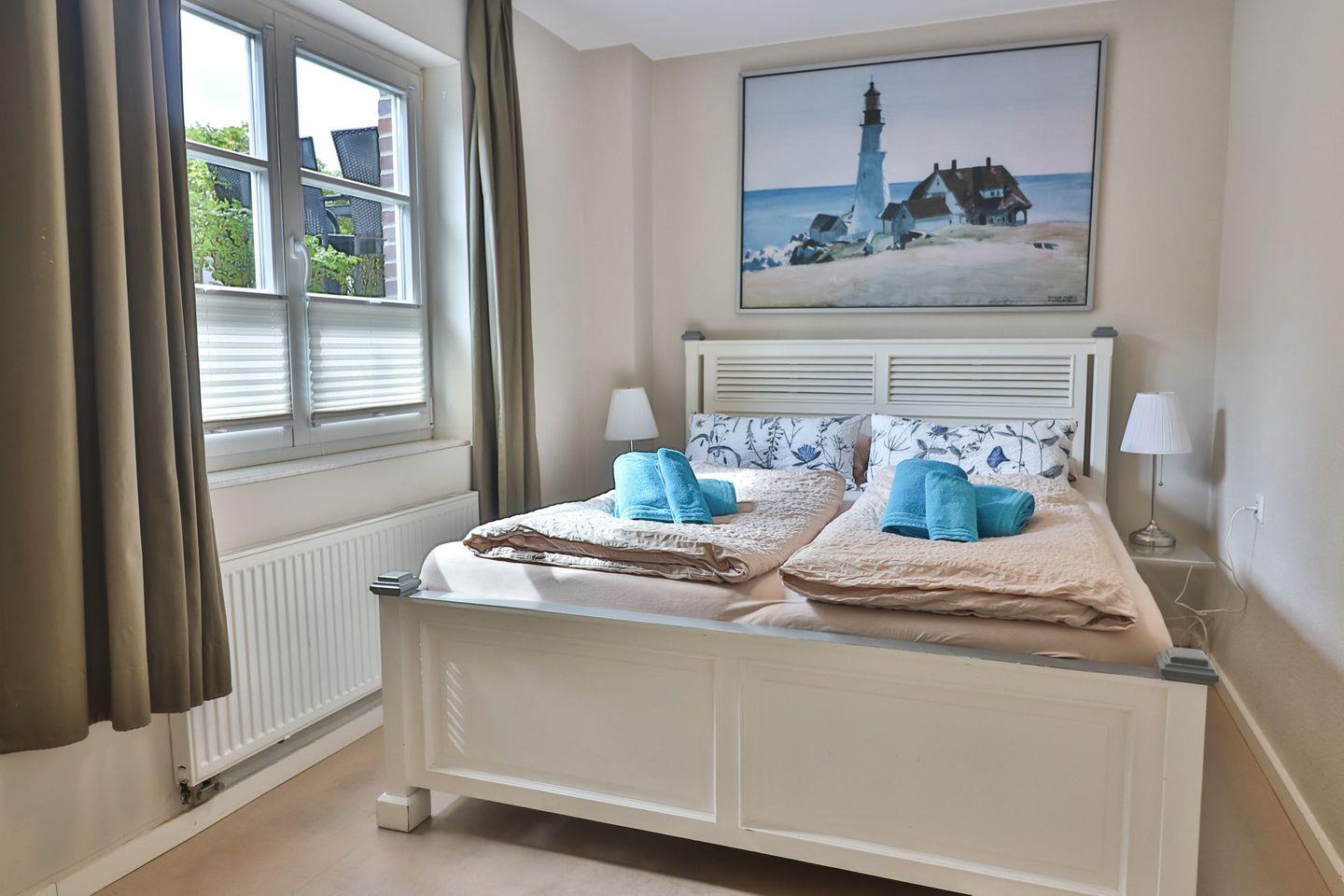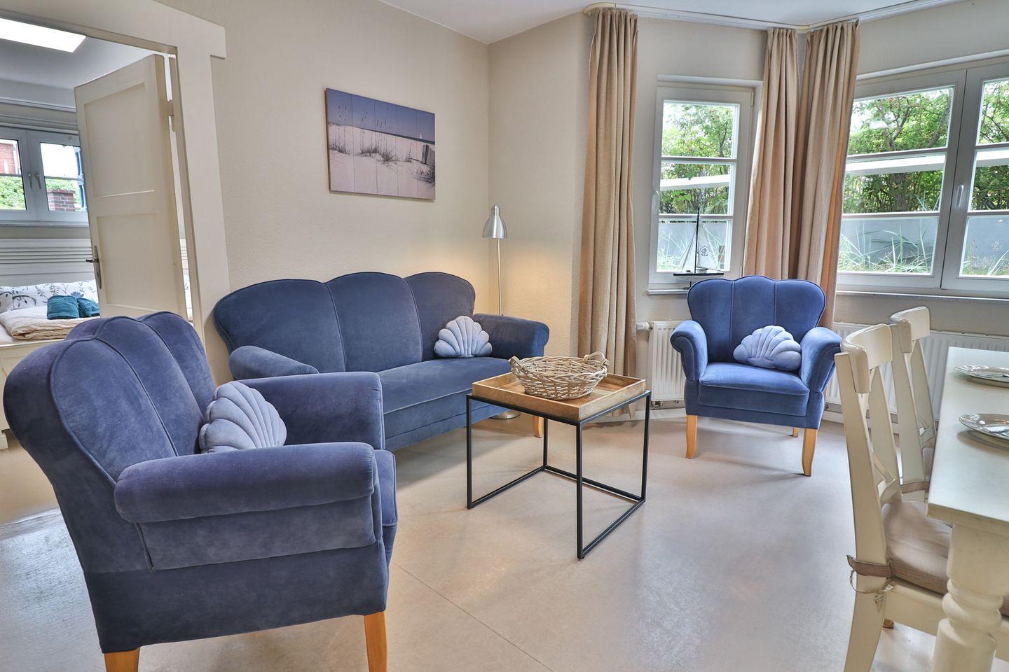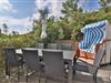 Der Außenbereich bietet Ihnen eine eigene möblierte Terrasse sowie einen gemeinschaftlich Garten mit Sonnenstühlen, Gartenmöbeln, Liegewiese und einem Strandkorb. Hier können Sie entspannen und die frische Nordseeluft genießen.