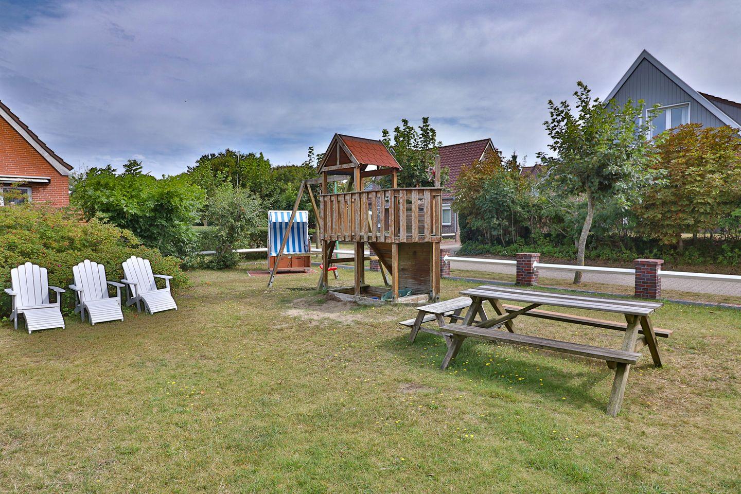 Ein besonderes Highlight ist die Terrasse, die durch Gartenmöbel, einen Sonnenschirm und einen eigenen Strandkorb vollständigen Urlaubsgenuss ermöglicht. Der zugehörige Gartenbereich mit Liegewiese, Sandkasten, Schaukel und Spielplatz bietet besonders Kindern vielfältige Spiel- und Bewegungsmöglichkeiten. Haustiere sind – maximal ein Tier – ebenfalls willkommen, sodass Sie Ihren Aufenthalt gemeinsam mit Ihrem vierbeinigen Begleiter verbringen können.