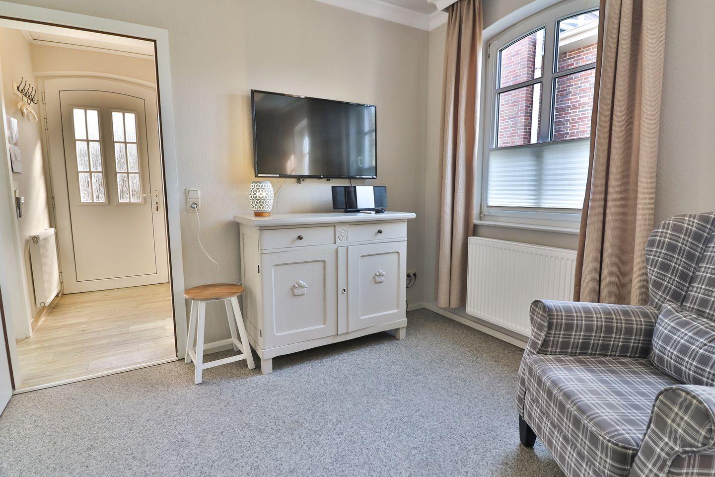 Der helle Wohnraum verfügt über eine Sofaecke mit Sessel und TV, in der Sie den Inseltag gemütlich ausklingen lassen können. Für Unterhaltung sorgen neben dem Fernseher auch eine HiFi-Anlage, Radio sowie kostenfreies WLAN. Gesellschaftsspiele sind ebenfalls vorhanden und bieten kurzweilige Abwechslung.
