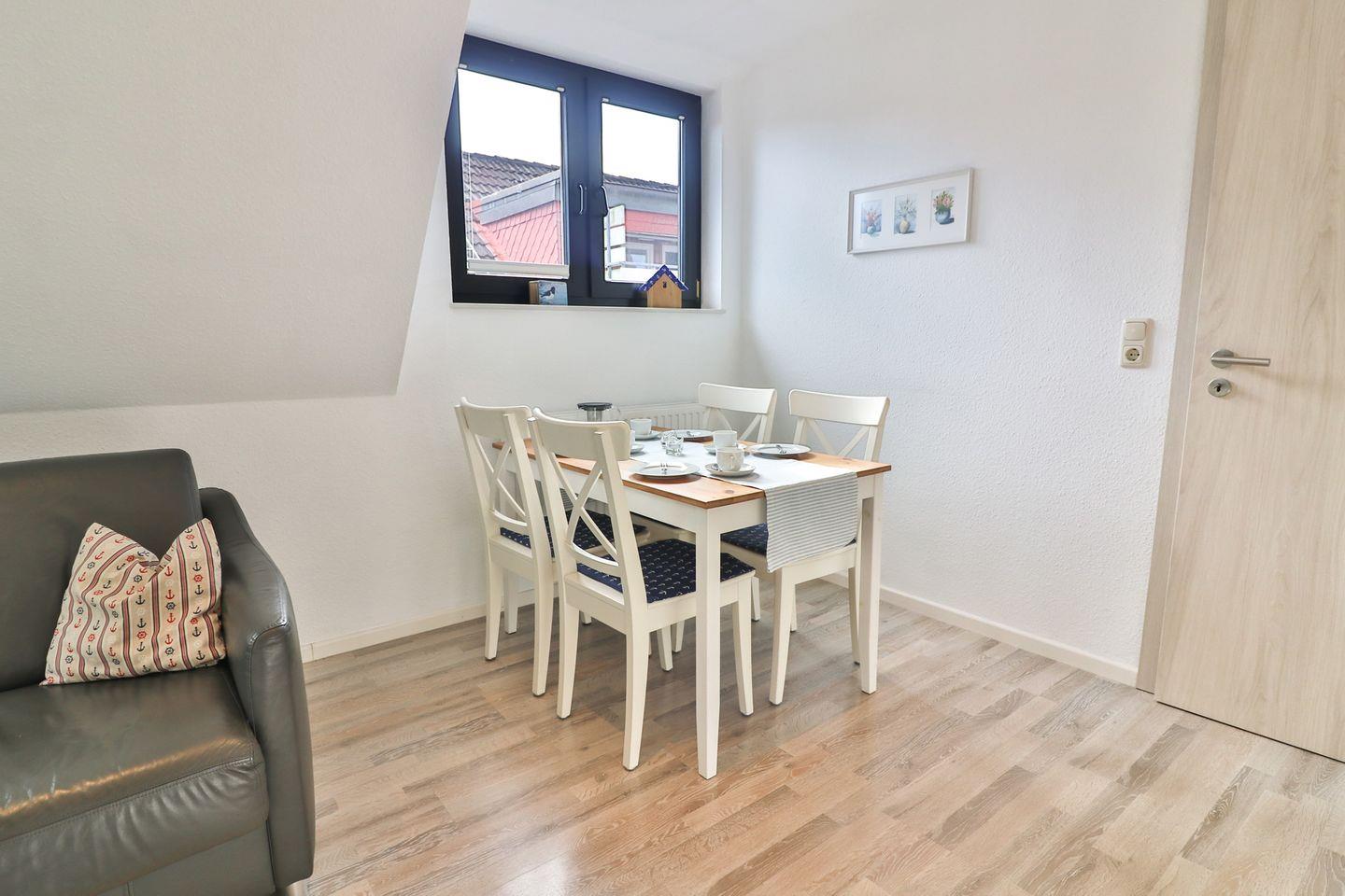Die Unterkunft „Austernfischer“ befindet sich in der Mittelstraße 14 auf der Nordseeinsel Langeoog. Sie bietet auf 42 m² Wohnfläche modernen Komfort für Paare, kleine Familien oder einzelne Reisende, die Wert auf eine umfassende Ausstattung legen und einen angenehmen Aufenthalt suchen. Ihnen steht ein gemütlich eingerichtetes Maisonette-Apartment im 1. und 2. Stock mit insgesamt drei Zimmern zur Verfügung, darunter ein Wohnzimmer mit Schlafcouch (160 x 190 cm), ein Zimmer im Obergeschoss sowie ein separates Schlafzimmer mit einem bequemen Doppelbett (180 x 200 cm) für bis zu drei Personen mit maximal 2 Erwachsenen. Kinder und Babys sind willkommen, sodass hier auch kleine Familien eine geeignete Bleibe finden.