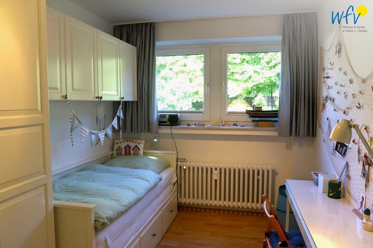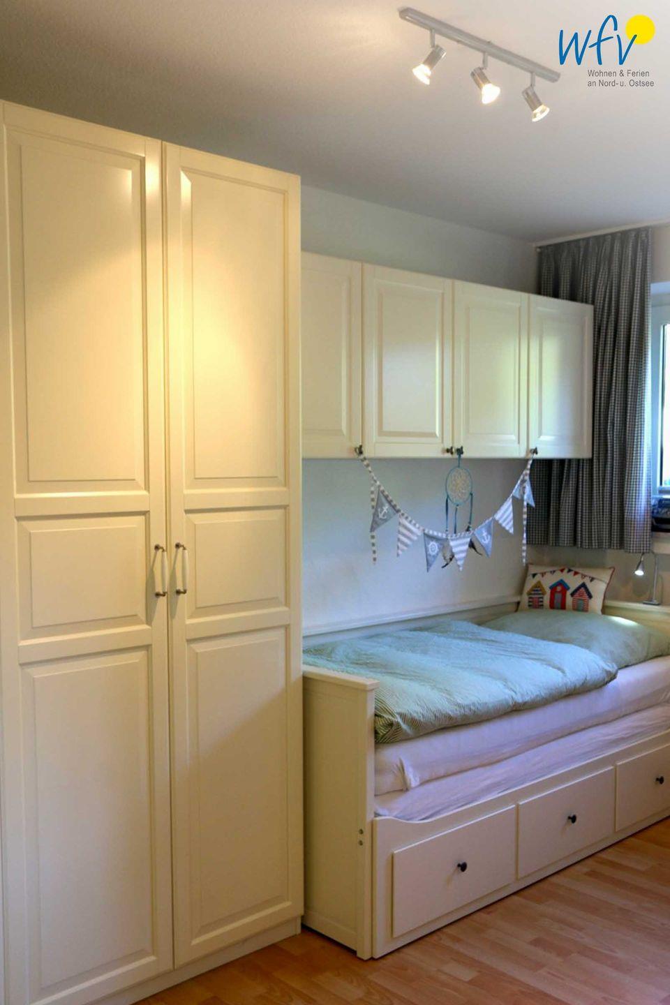 Zwei separate Schlafzimmer bieten Ihnen angenehme Rückzugsmöglichkeiten. Während das Elternschlafzimmer mit einem Doppelbett eingerichtet ist (180 x 200 cm), befindet sich im Kinderzimmer ein Einzelbett (80 x 200 cm; ausziehbar für eine zweite Person). Für Ihre Urlaubsgarderobe sind jeweils Kleiderschränke vorhanden. Zwei weitere Personen können auf der Schlafcouch im Wohnraum übernachten.