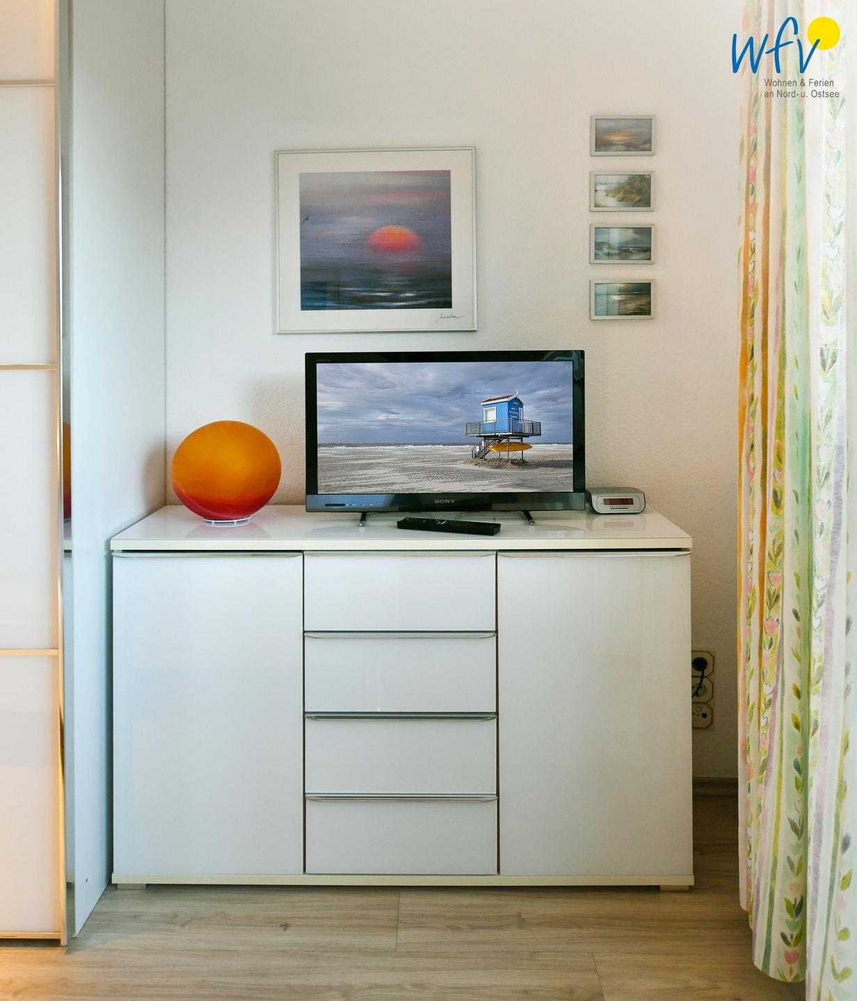 Nach dem Strandtag oder der Wattwanderung lädt der helle Wohnraum mit Essplatz und Sofaecke sowie TV, DVD-Player und CD-Player ein. Oder Sie genießen auf dem Balkon erholsame Stunden - mit einem Buch und dem schönen Ausblick in die ruhige Umgebung. Ein wunderbares Urlaubsgefühl!