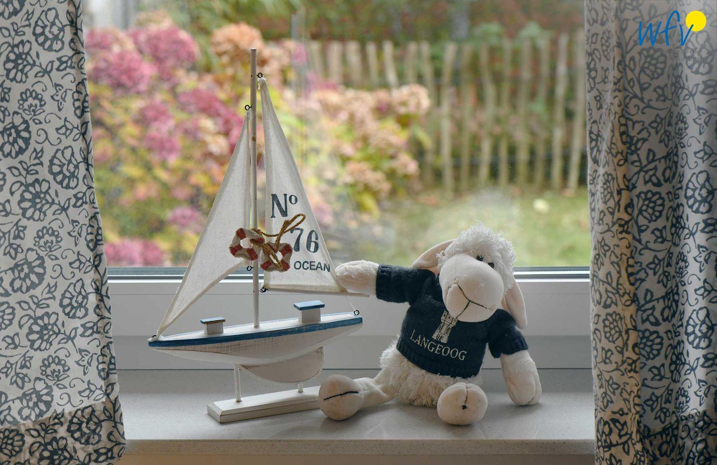 Es erwartet Sie eine moderne und gemütliche Einrichtung in harmonischer Farbgebung; maritime Accessoires sorgen für das entsprechende Nordseegefühl. Genießen Sie bereits beim Frühstück auf der Terrasse die Seeluft und die idyllische Inselruhe. Die Süd-Lage sowie bequeme Teakholzmöbel und ein Strandkorb laden dazu ein, viele Stunden lang Sonne auszukosten. Der wohnungseigene Garten bietet ebenfalls Gelegenheit zur Entspannung und Ihre Kinder haben Platz zum Spielen.