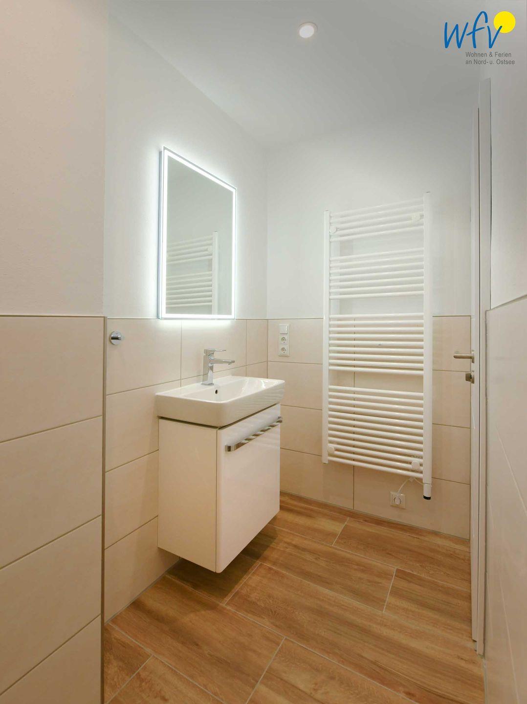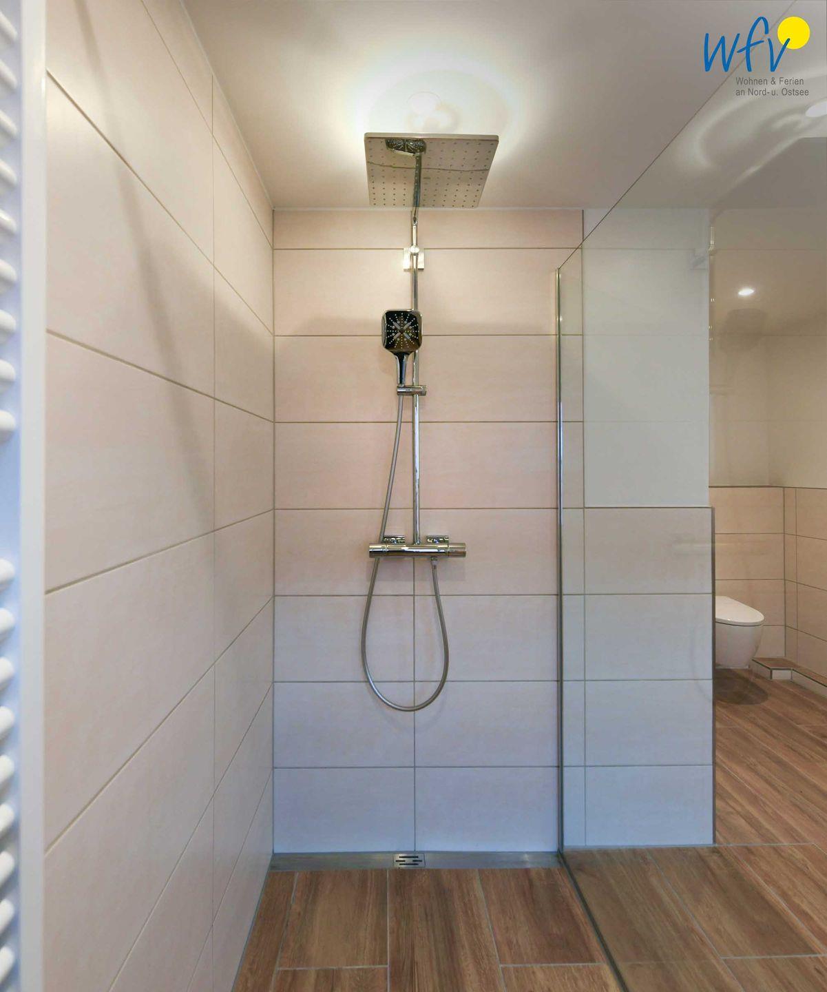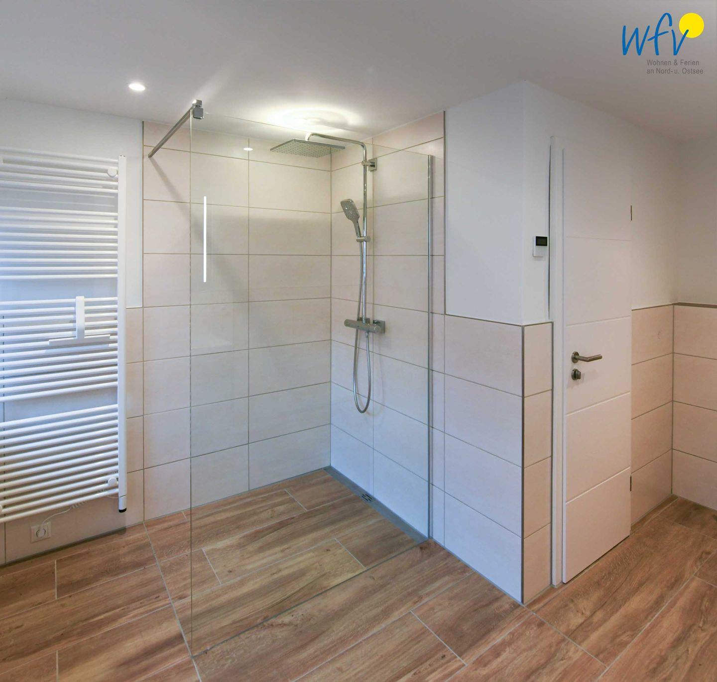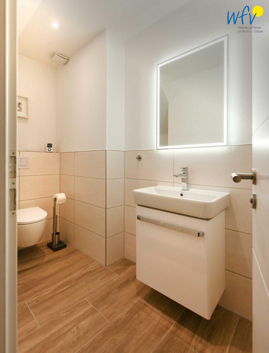 Zwei großzügige lichtdurchflutete Tageslichtbäder (EG + OG) mit moderner und hochwertiger Einrichtung in harmonischen Farben sowie ein zusätzliches Gäste-WC sorgen für angenehme Ausweichmöglichkeiten und wohltuende Entspannungszeit. Große Regenduschen (bodengleich) mit Walk-in für das ultimative Duscherlebnis, elegante Waschtische und Handtuchheizungen ergänzen den Komfort. In einem Bad befinden sich zudem Waschmaschine und Trockner.