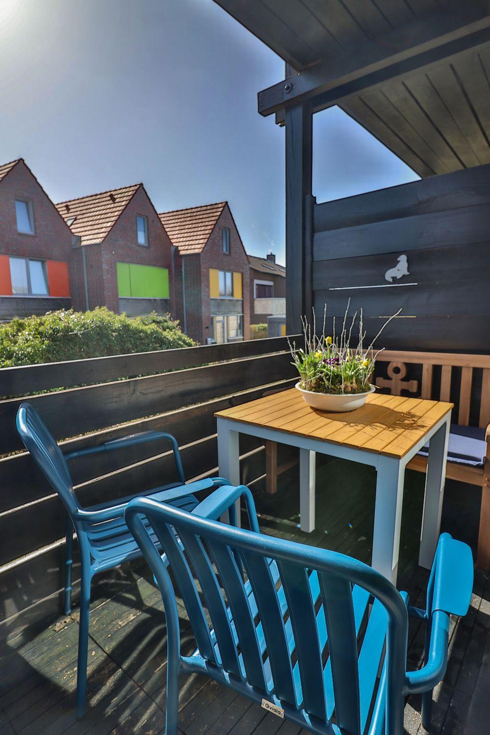 Vom Wohnzimmer aus gelangen Sie direkt auf den überdachten Südbalkon, der mit Balkonmöbeln ausgestattet ist – der perfekte Ort für ein Frühstück in der Sonne oder einen entspannten Ausklang des Tages.