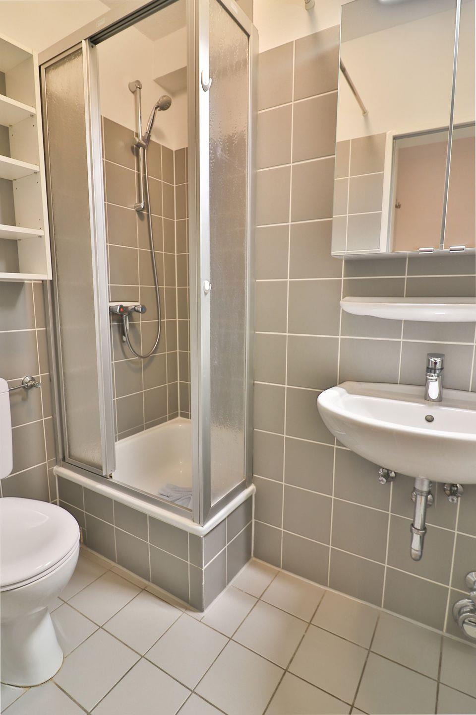 Das Badezimmer verfügt über WC, Waschbecken, einen Haartrockner sowie eine Dusche. Jeweils ein Set Handtücher und Bettwäsche sind inklusive. Eine Garderobe und Kommode unterstützen einen komfortablen Aufenthalt. Sichtschutz an allen Fenstern, Rauchmelder und Verbandskasten tragen zu einem angenehmen und sicheren Wohngefühl bei.