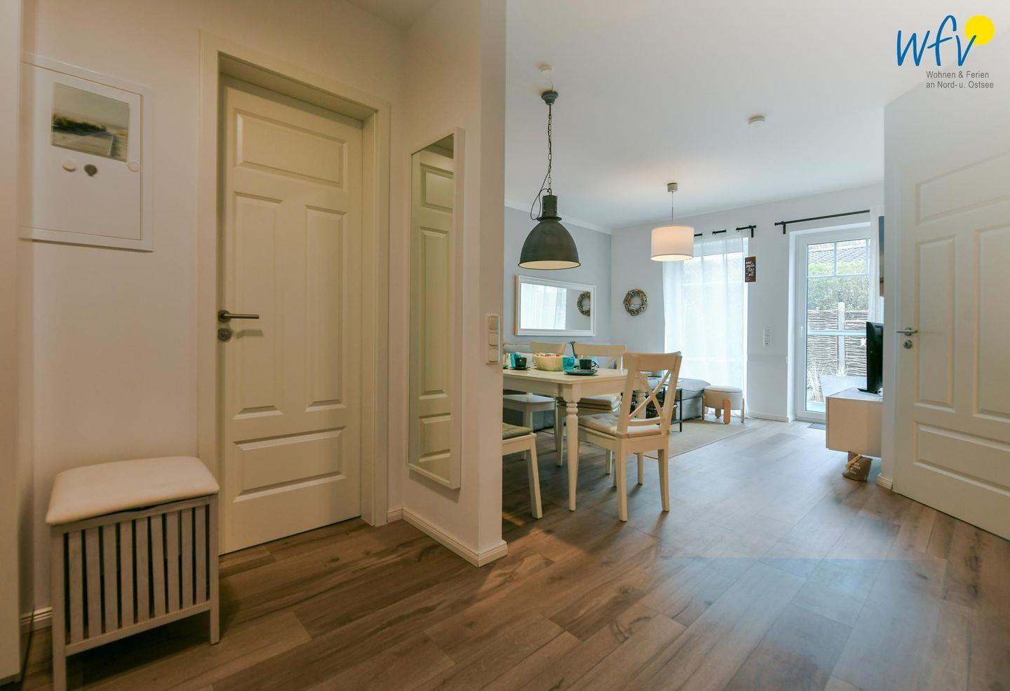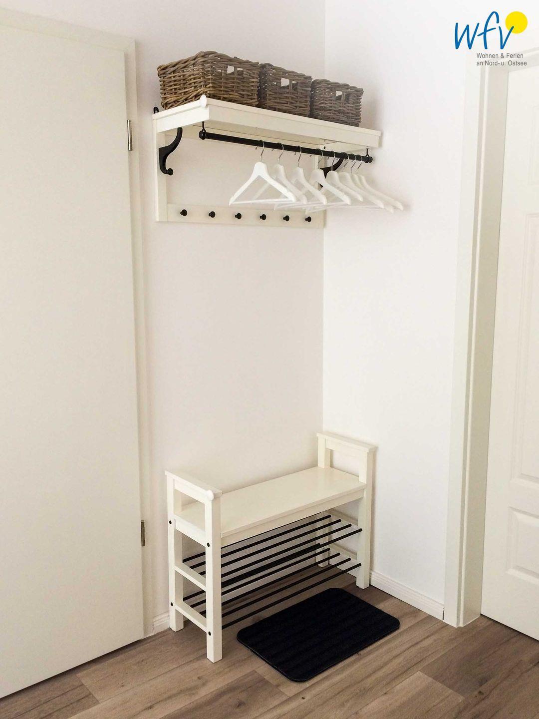 Im Flur finden Sie ausreichend Platz für zahlreiche Jacken und Schuhe; zudem einen Ganzkörperspiegel und eine Bank als Sitzgelegenheit.