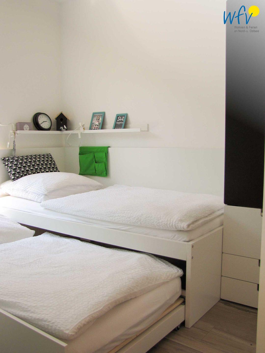 Zwei separate Schlafzimmer bieten Ihnen angenehme Rückzugsmöglichkeiten. Im größeren Schlafzimmer befindet sich ein breites Doppelbett (180 x 200 cm), ein geräumiger Kleiderschrank (mit ausreichend Kleiderbügeln) sowie ein weiterer Flachbildschirm. Das kleinere Schlafzimmer ist mit einem Einzelbett, das sich zu einem Doppelbett ausziehen lässt (2 x 90 x 200 cm), und einem Kleiderschrank ausgestattet. Verdunkelungsrollos in beiden Schlafbereichen gewährleisten einen geruhsamen Schlaf.