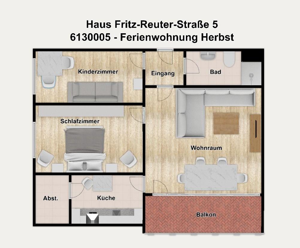 Herzlich willkommen im „Haus Fritz-Reuter-Straße 5". Unsere „Ferienwohnung Herbst" lädt zum Erholen und Ausspannen ein und eignet sich perfekt für den Urlaub mit bis zu vier Personen. In wenigen Minuten sind Sie bereits am Meer. Nur ein kurzer Spaziergang und schon erreichen Sie die Promenade und den Hauptbadestrand!