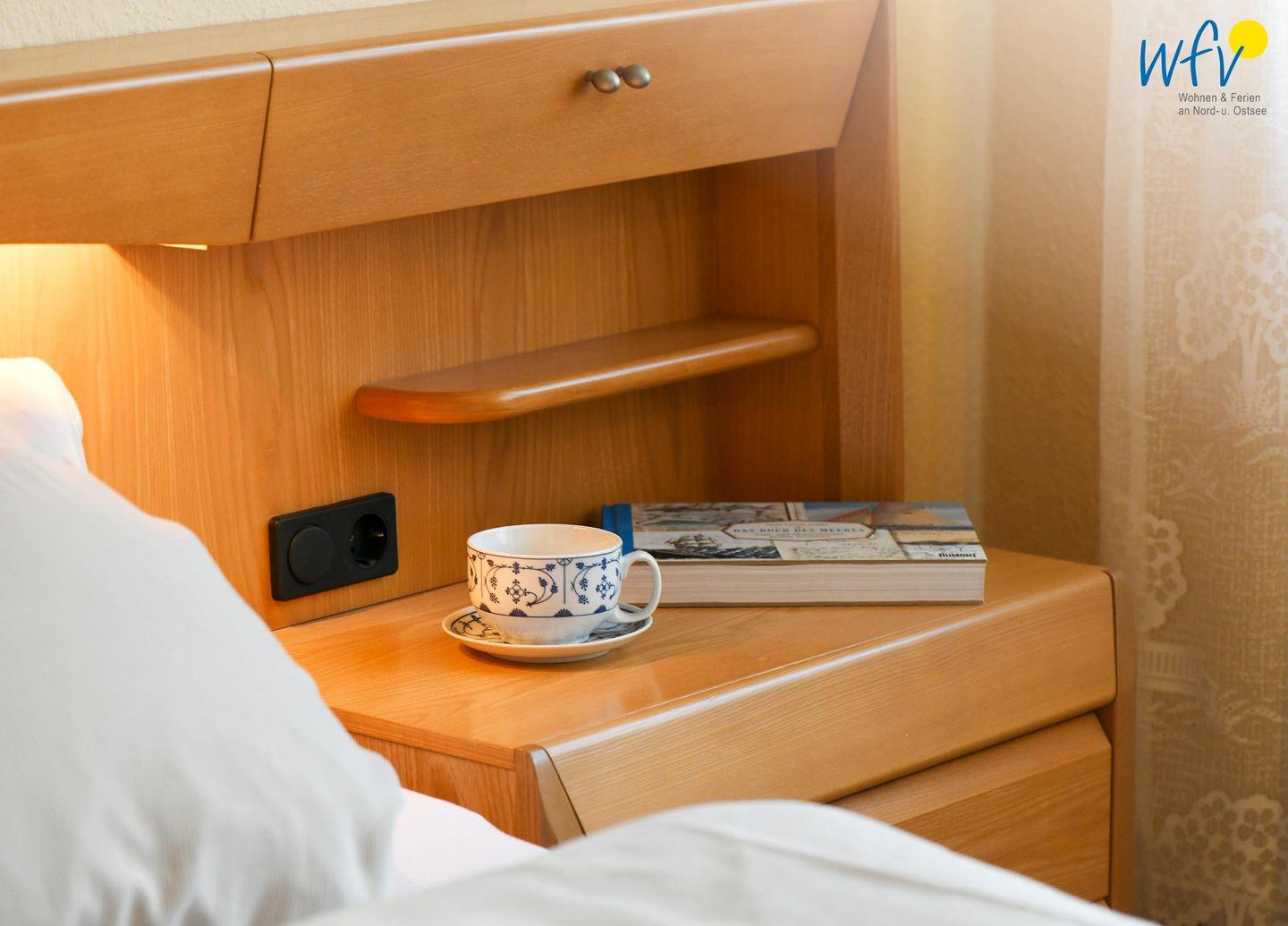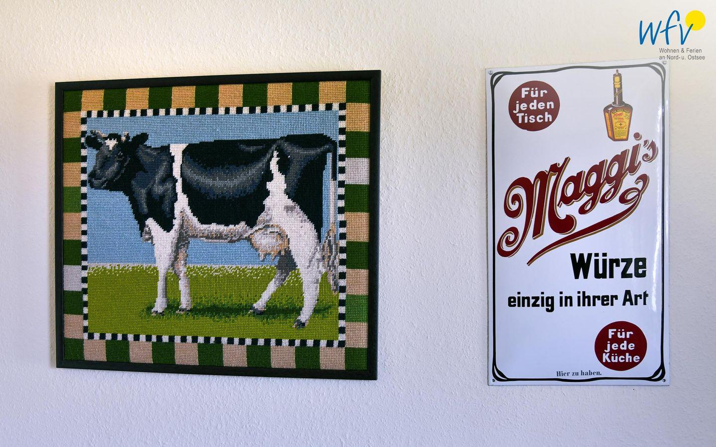 Für entspannte Stunden nach der Fahrradtour oder dem Strandtag ist der Wohnraum mit einer großen Ledercouch sowie mit TV, DVD-Player und CD-Player eingerichtet. Gemeinsame Mahlzeiten oder Spieleabende können Sie am Esstisch verbringen. Es sind sowohl einige Bücher und CDs vorhanden, als auch Spiele für Kinder und Erwachsene.
