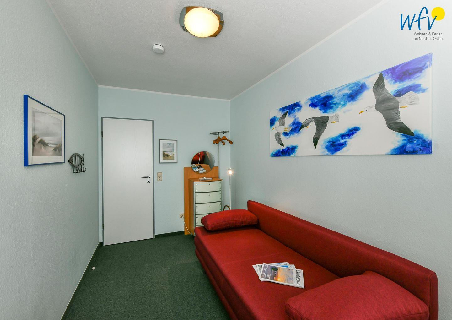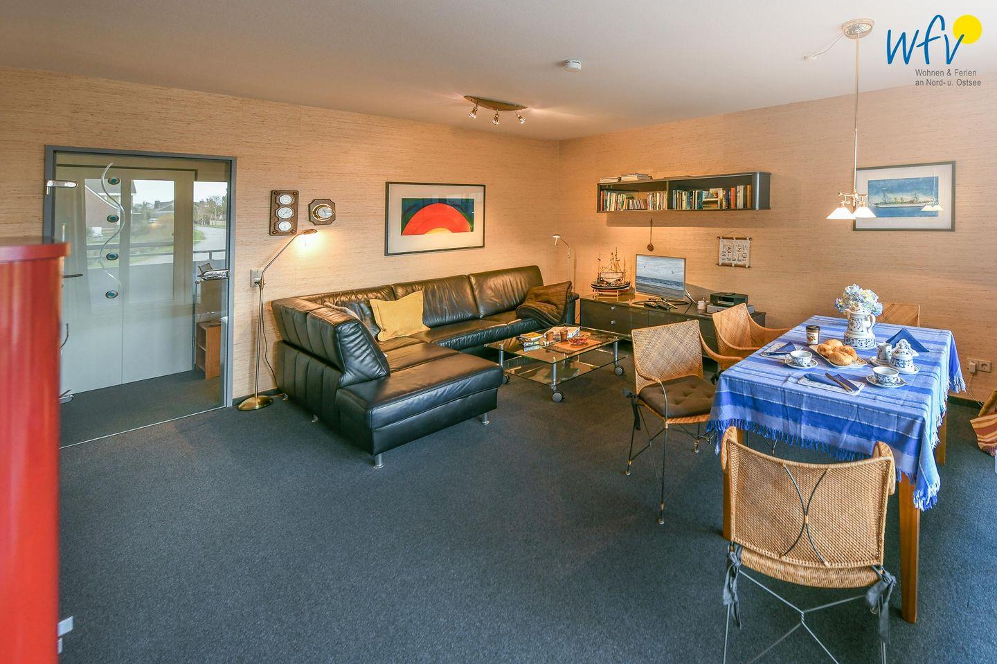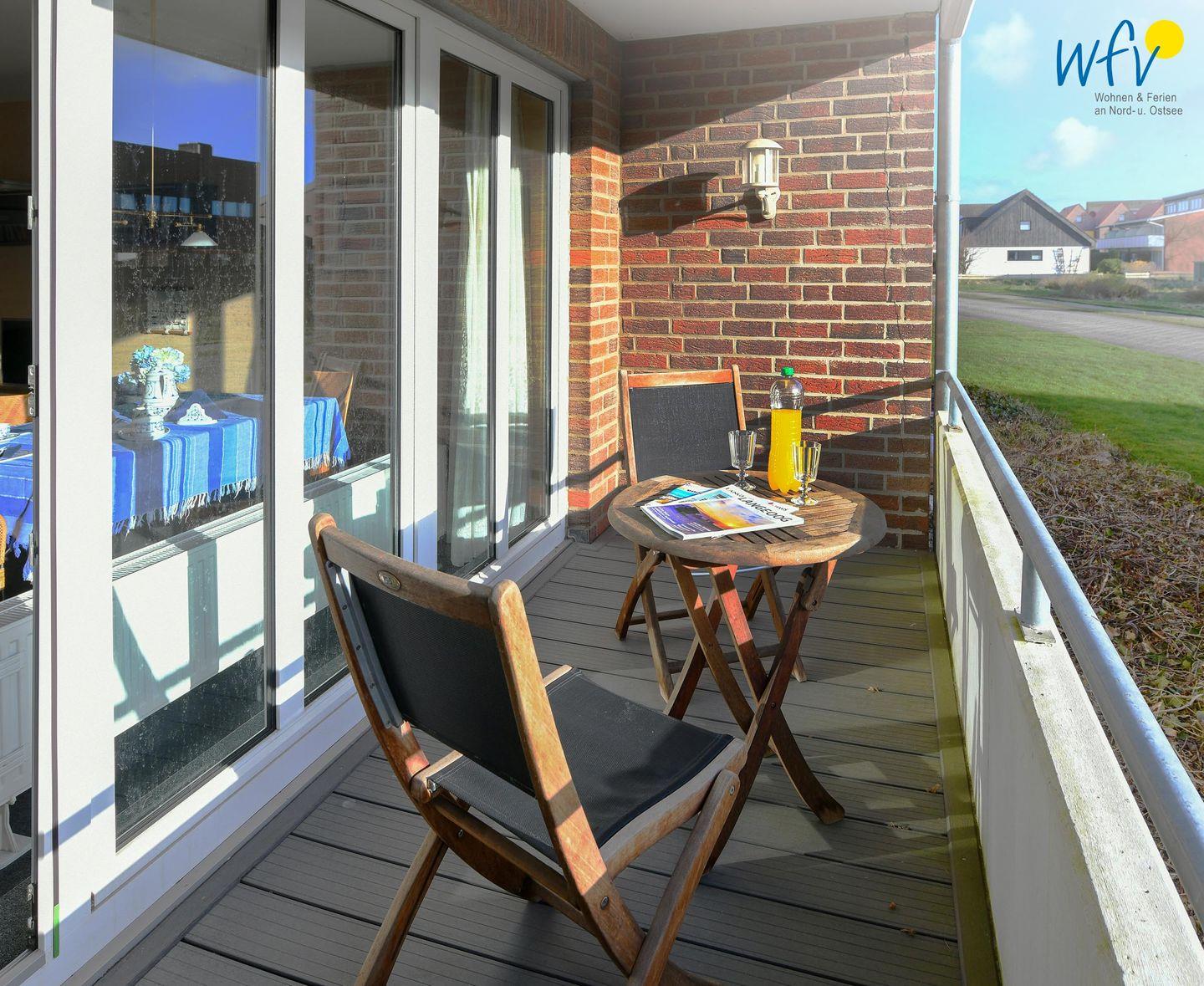 Die Unterkunft verfügt über 63 m², die sich in einen geräumigen Wohnraum, ein separates Schlafzimmer, ein weiteres Zimmer, eine separate Küche, ein modernes Duschbad und einen praktischen Abstellraum aufteilen. Auf dem überdachten Balkon mit schönem Blick in die ruhige Umgebung genießen Sie frische Nordseeluft - ideal, um zu lesen oder Mahlzeiten im Freien einzunehmen. Auch der Gemeinschaftsgarten und eine kleine Sitzecke mit Holzbänken bietet Gelegenheiten zum Verweilen.