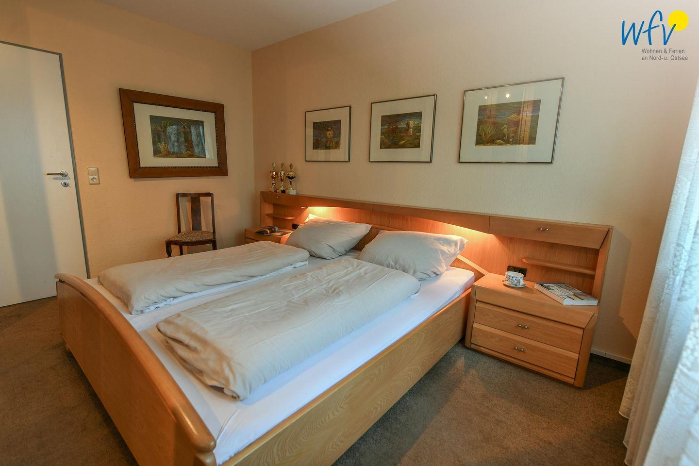 Das separate Schlafzimmer verspricht eine angenehme Nachtruhe. Ausgestattet ist es mit einem Doppelbett (2 x 90 x 200 cm) und einem geräumigen Kleiderschrank. In einem weiteren Zimmer befindet sich eine Schlafcouch, die sich schnell und einfach zu einem kleinen Doppelbett umfunktionieren lässt (2 x 75 x 200 cm).
