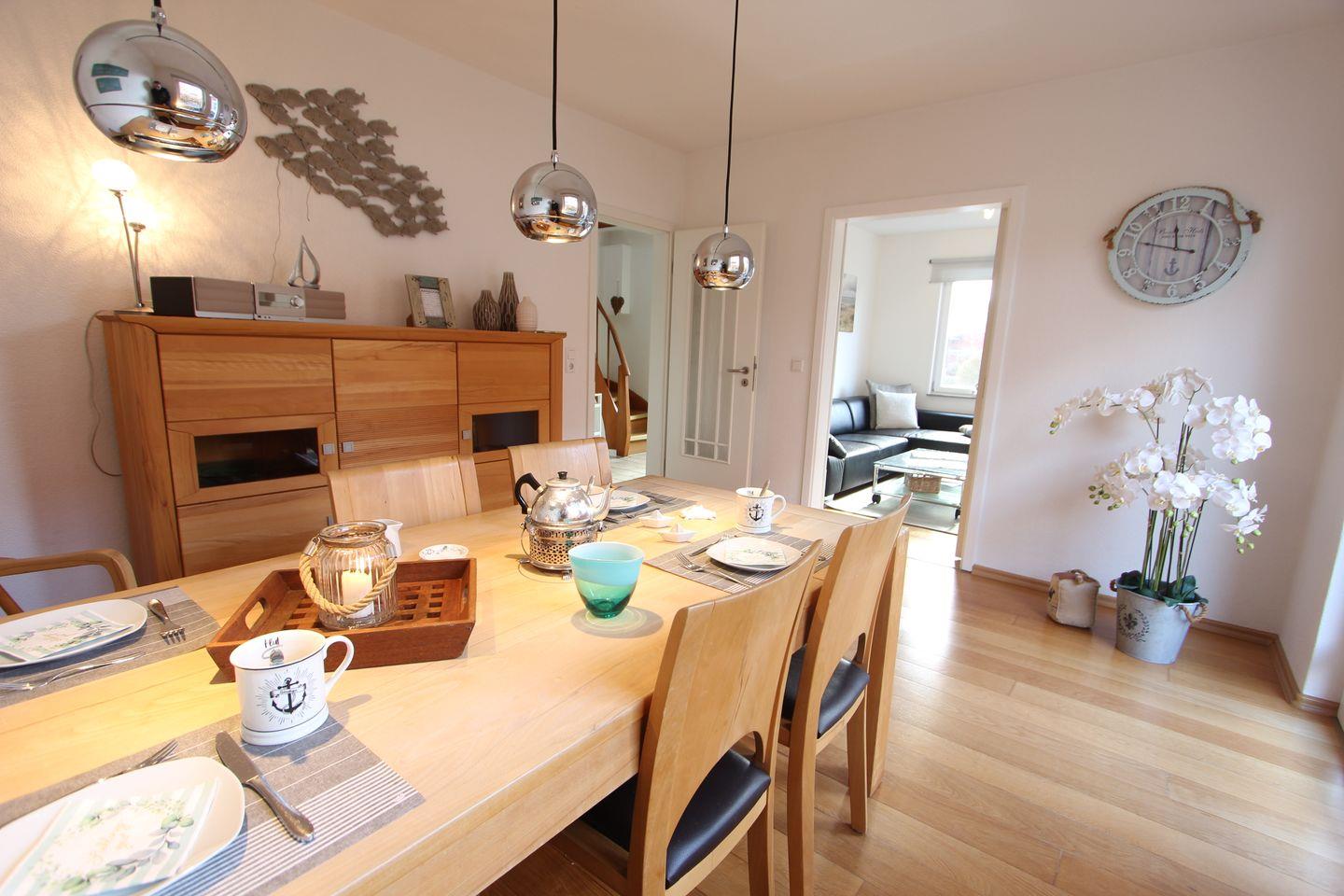 EG: Wohnzimmer, Esszimmer und voll ausgestattete Küche, Gäste-WC