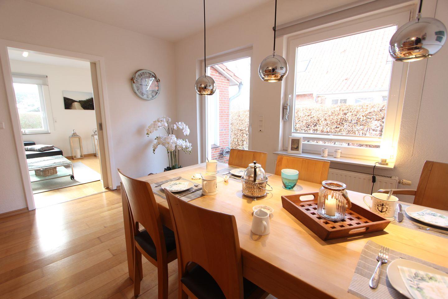 Charmantes Ferienhaus mit angrenzender Ferienwohnung, eingebettet in einen herrlichen Garten – hier weht stets eine frische Nordseebrise. Das Haus bietet ausreichend Platz für bis zu sechs Personen und ist der perfekte Heimathafen für entspannte Urlaubstage.