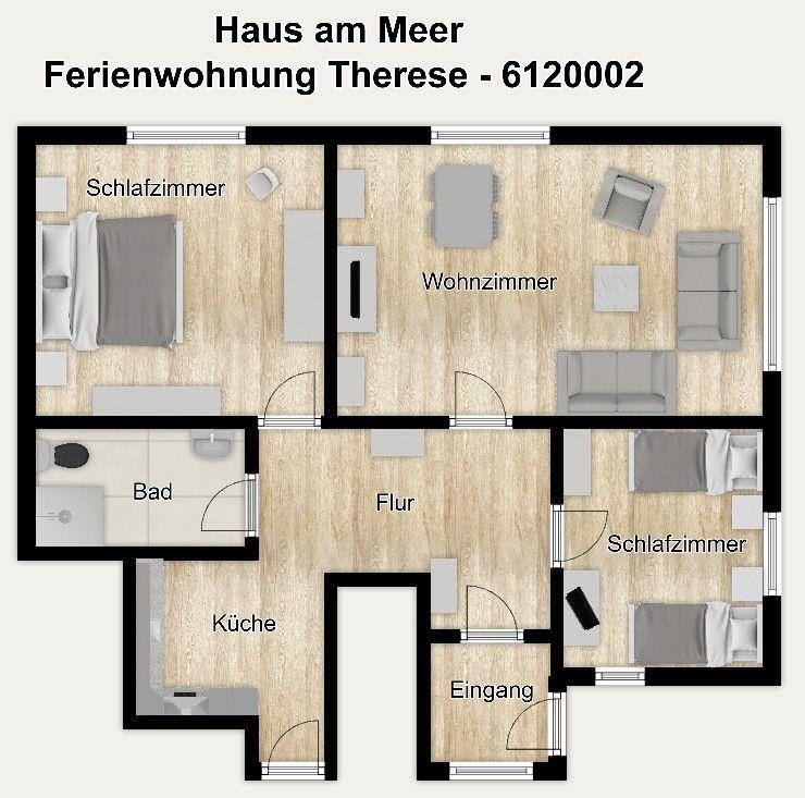 Entdecken Sie unsere komfortable Ferienwohnung "Therese" im "Haus am Meer" auf Langeoog! Die moderne Unterkunft in strandnaher Lage bietet Ihnen auf 70 m² Platz für 4 Personen - ideal für Ihren Familienurlaub. Genießen Sie Annehmlichkeiten wie einen offenen Wohnraum, zwei separate Schlafzimmer, ein modernes Tageslichtbad sowie einen wunderbaren Gemeinschaftsgarten mit Grillmöglichkeit. Wir wünschen Ihnen traumhafte Ferien an der Nordsee!