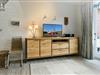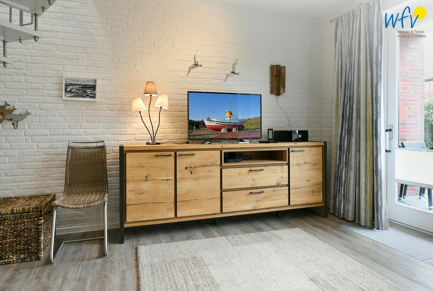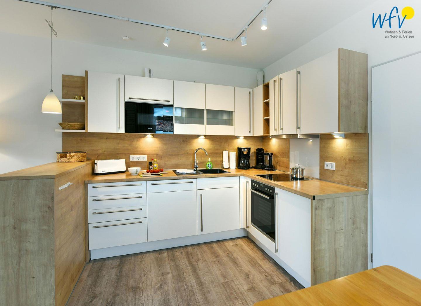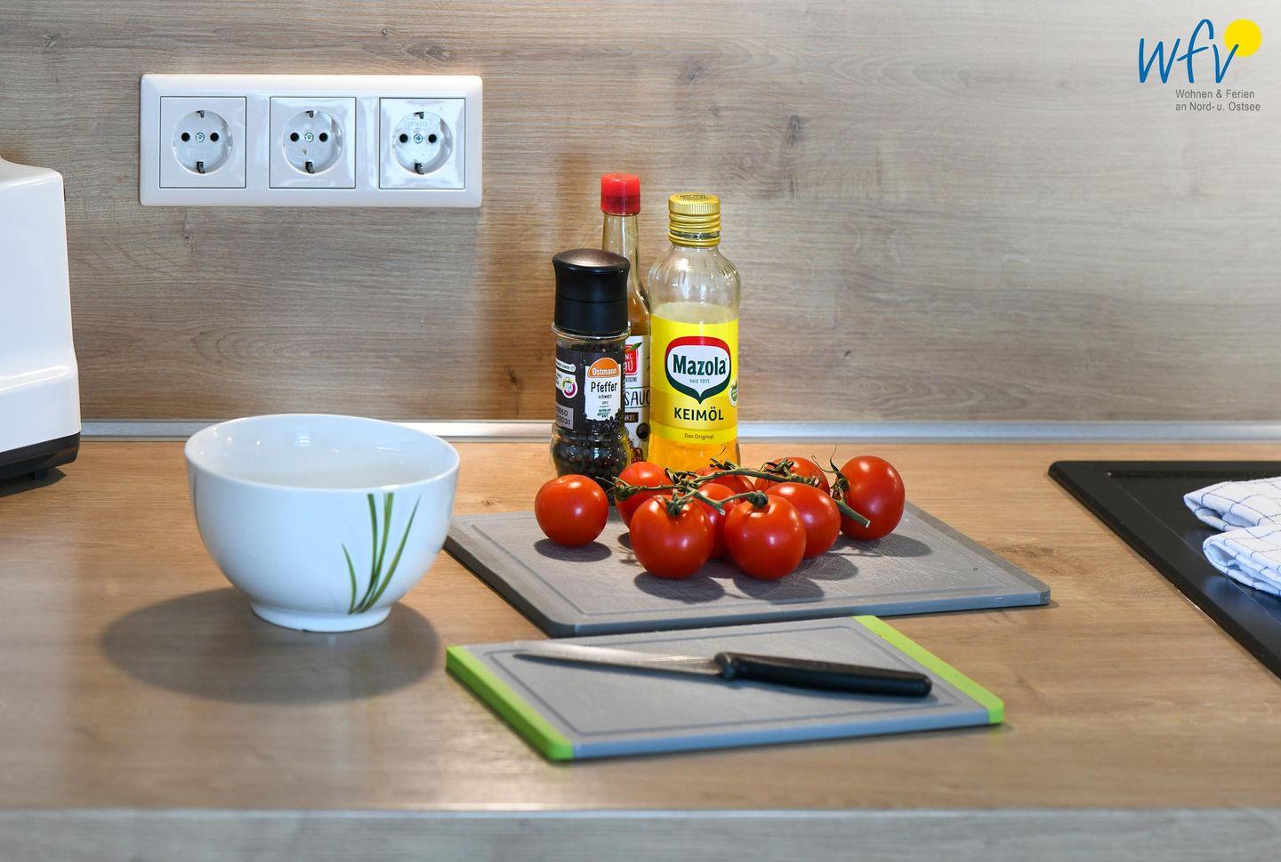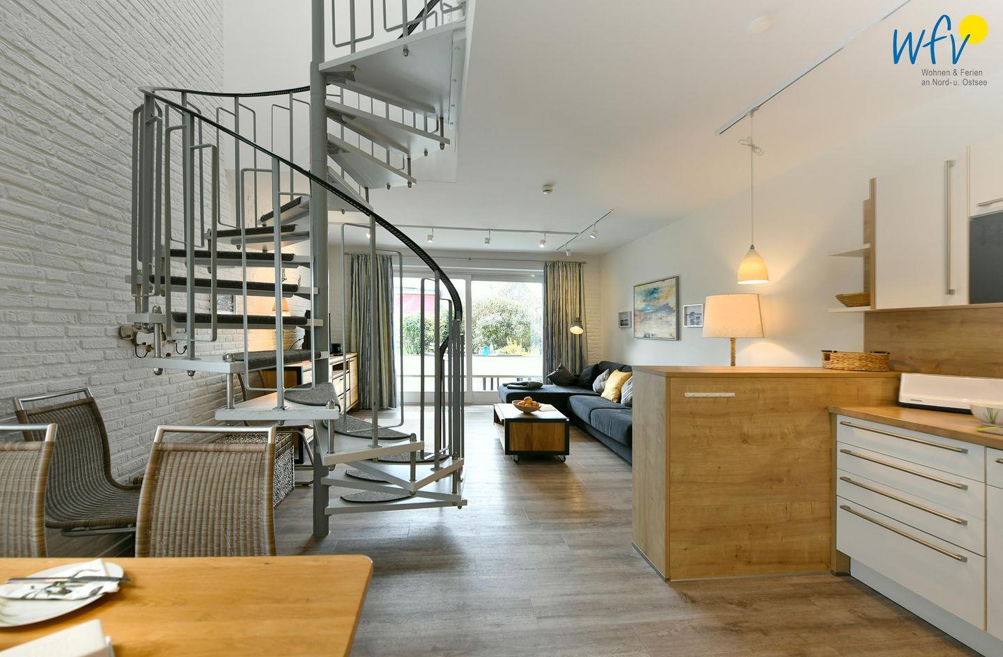 Die Maisonettewohnung verfügt über 75 m² und erstreckt sich über zwei Etagen (EG und OG). In der unteren Etage empfängt Sie ein offener Wohnraum mit gemütlicher Couchecke, TV, Blu-ray-Player und HiFi-Anlage. Die integrierte moderne Küche - u.a. mit Induktionsherd, Backofen und Spülmaschine - sowie ein Essplatz mit herrlichem Blick in den Garten bieten Platz für gemeinsame Stunden. Vom Wohnbereich aus gelangen Sie auf die großzügige, überdachte und möblierte Süd-West-Terrasse. Ein weiteres Plätzchen zum Verweilen finden Sie im direkt angrenzenden hauseigenen Garten mit Sonnenliegen.