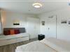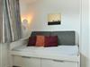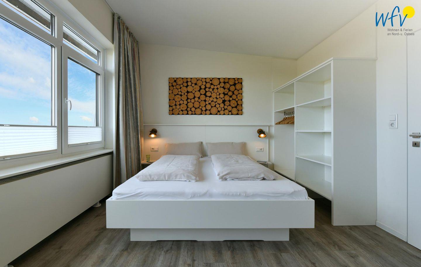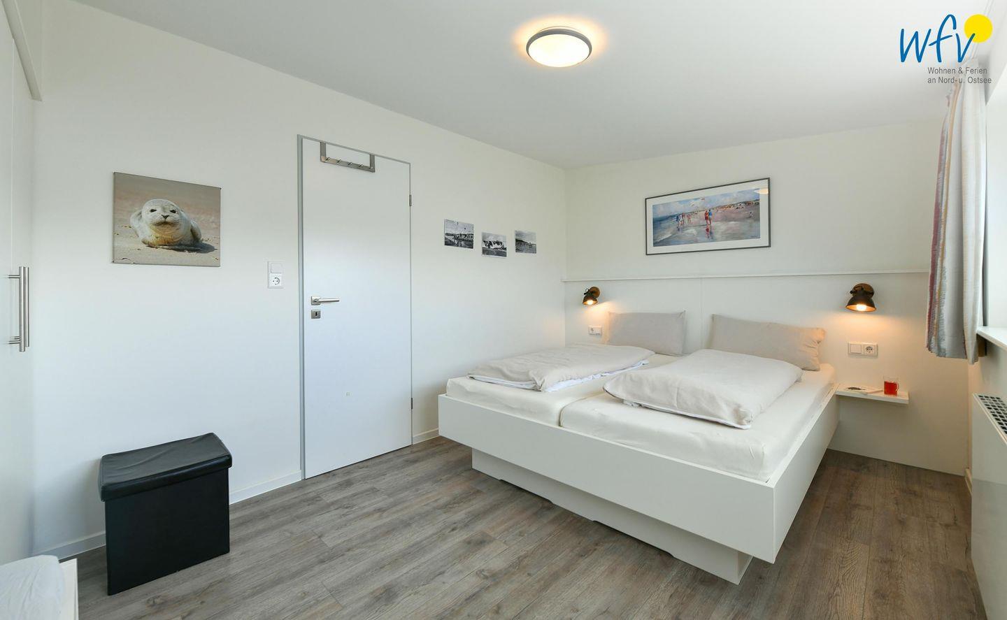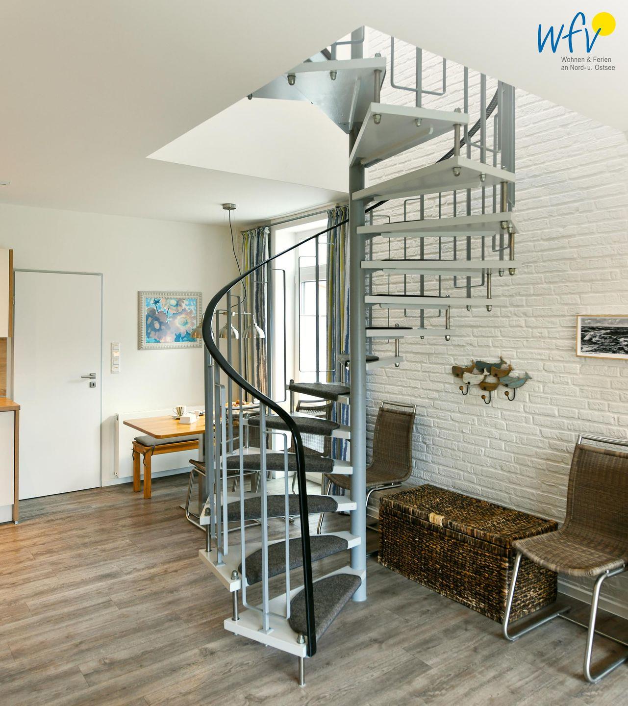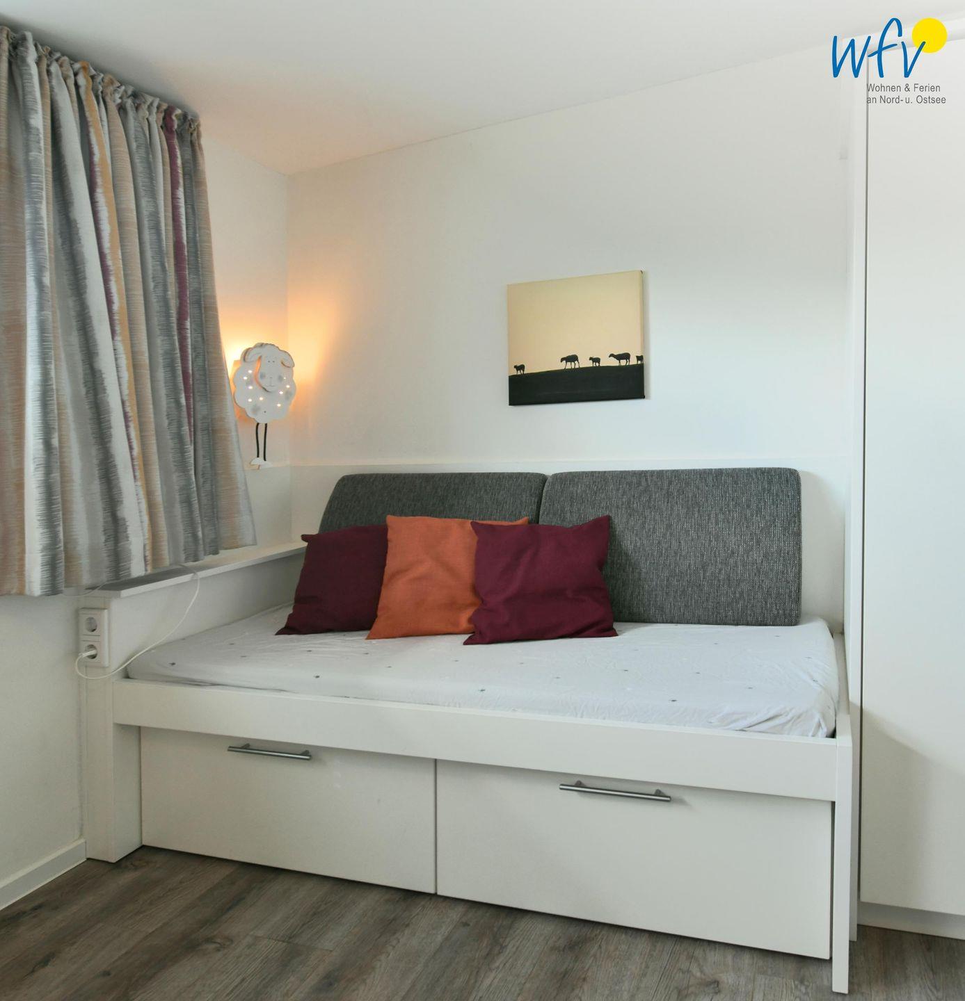 Eine Wendeltreppe führt zu den zwei separaten Schlafzimmern im Obergeschoss. Eines der Zimmer ist mit Doppelbett (180 x 200 cm) und kleiner Sitzecke ausgestattet. Dieser Raum besticht durch seine Panoramafensterfront mit einem traumhaften Blick in die Langeooger Dünenwelt. Genießen Sie vom angrenzenden möblierten Balkon die Luft und die Landschaft samt wunderschönen Sonnenaufgängen - sogar das Meer hören Sie hier rauschen! In dem anderen Schlafzimmer zur Gartenseite hin befindet sich neben dem Doppelbett (180 x 200 cm) ein Kinderbett für unsere kleinen Nordseeurlauber (120 x 70 cm). Die Schlafcouch im Wohnzimmer kann zu einem komfortablen kleinen Doppelbett umfunktioniert werden (160 x 200 cm).