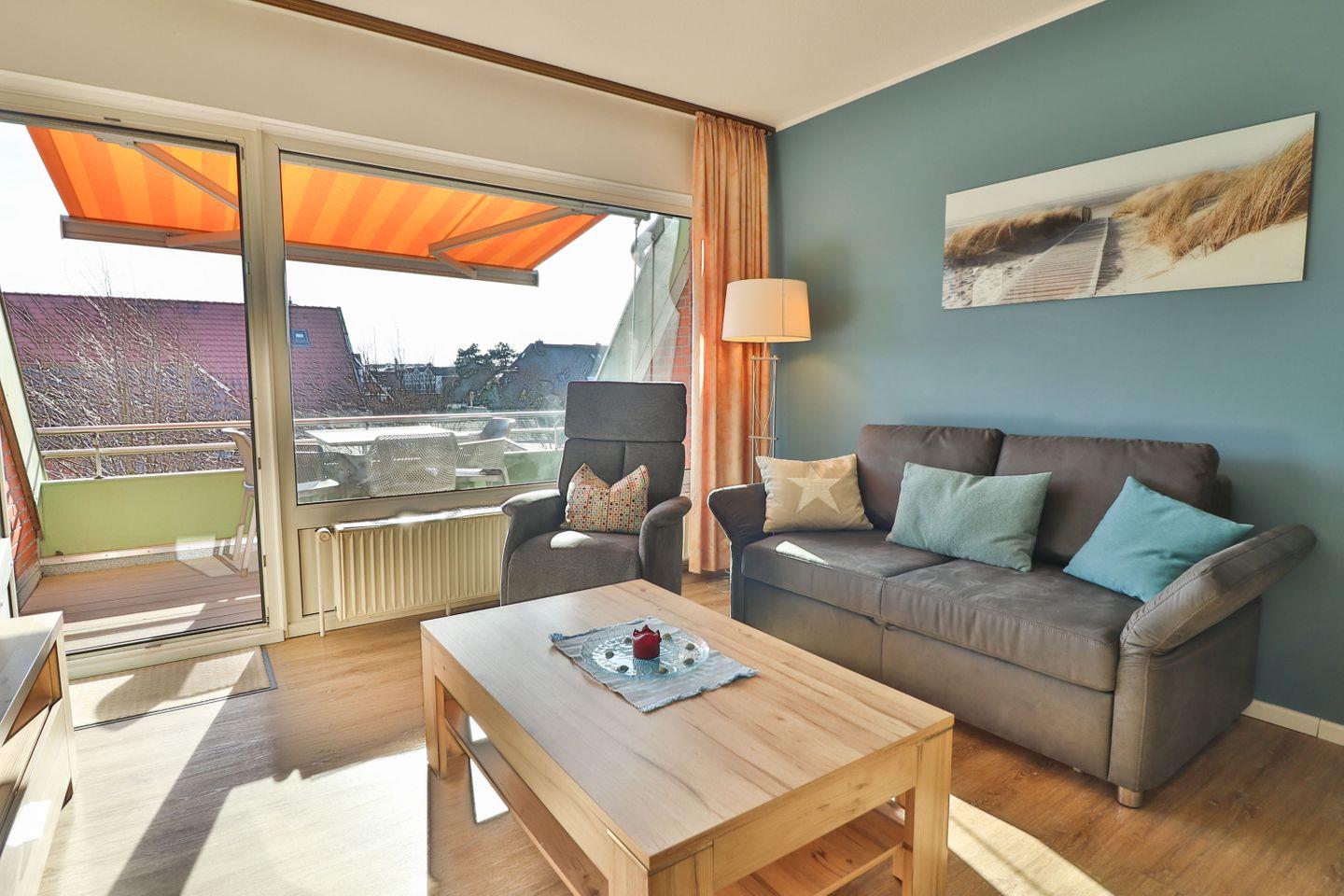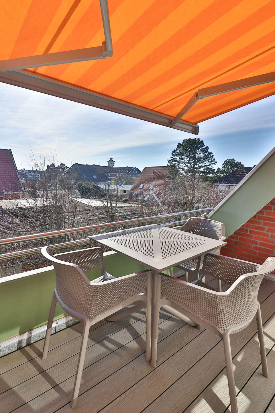 Ein besonderer Pluspunkt ist der Balkon mit Markise, der Ihnen auch an heißen Sommertagen einen geschützten Außenbereich mit Sicht auf den Wasserturm bietet. Hier können Sie bei viel frischer Nordseeluft die Seele baumeln lassen.