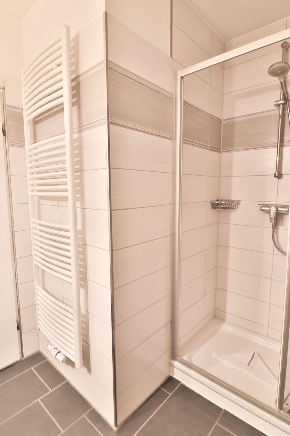 Das Schlafzimmer ist mit einem bequemen Doppelbett (180 x 200 cm) sowie einem geräumigen Kleiderschrank für Ihre Habseligkeiten möbliert. Das Badezimmer enthält eine Dusche, ein Waschbecken sowie ein WC und ein kleines Regal. Auch ein Haartrockner steht Ihnen zur Verfügung. Je ein Set Bettwäsche und Handtücher pro Person sind bereits im Preis inklusive, was Ihre Anreise angenehm erleichtert.