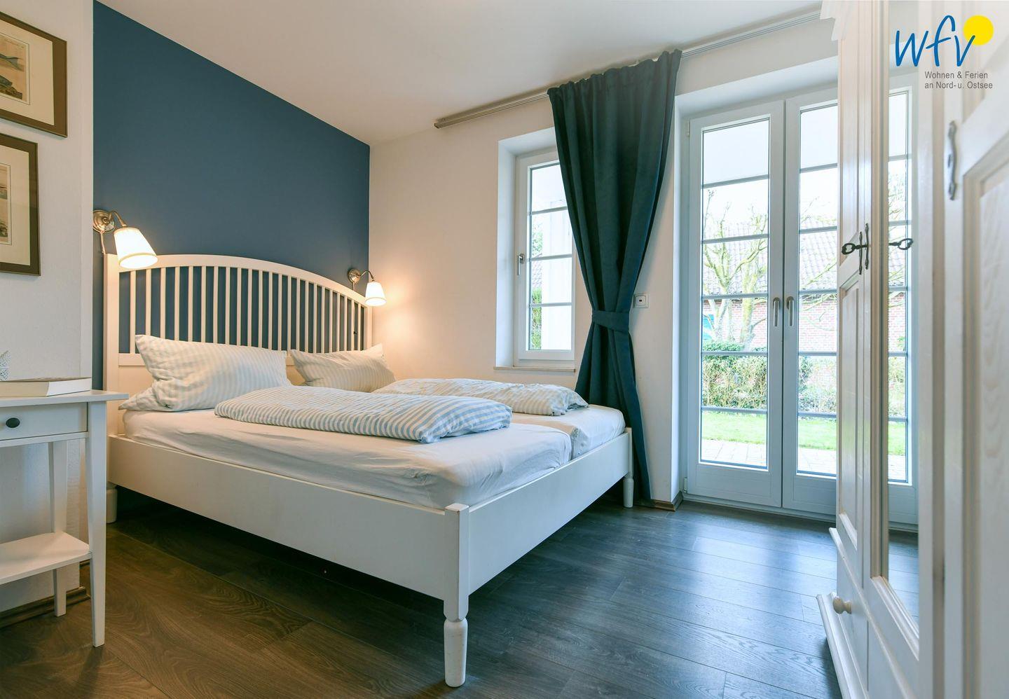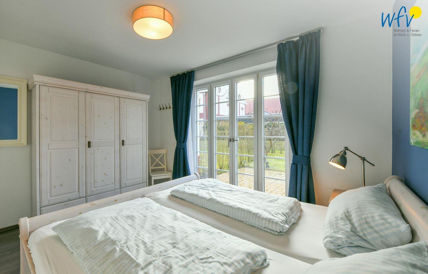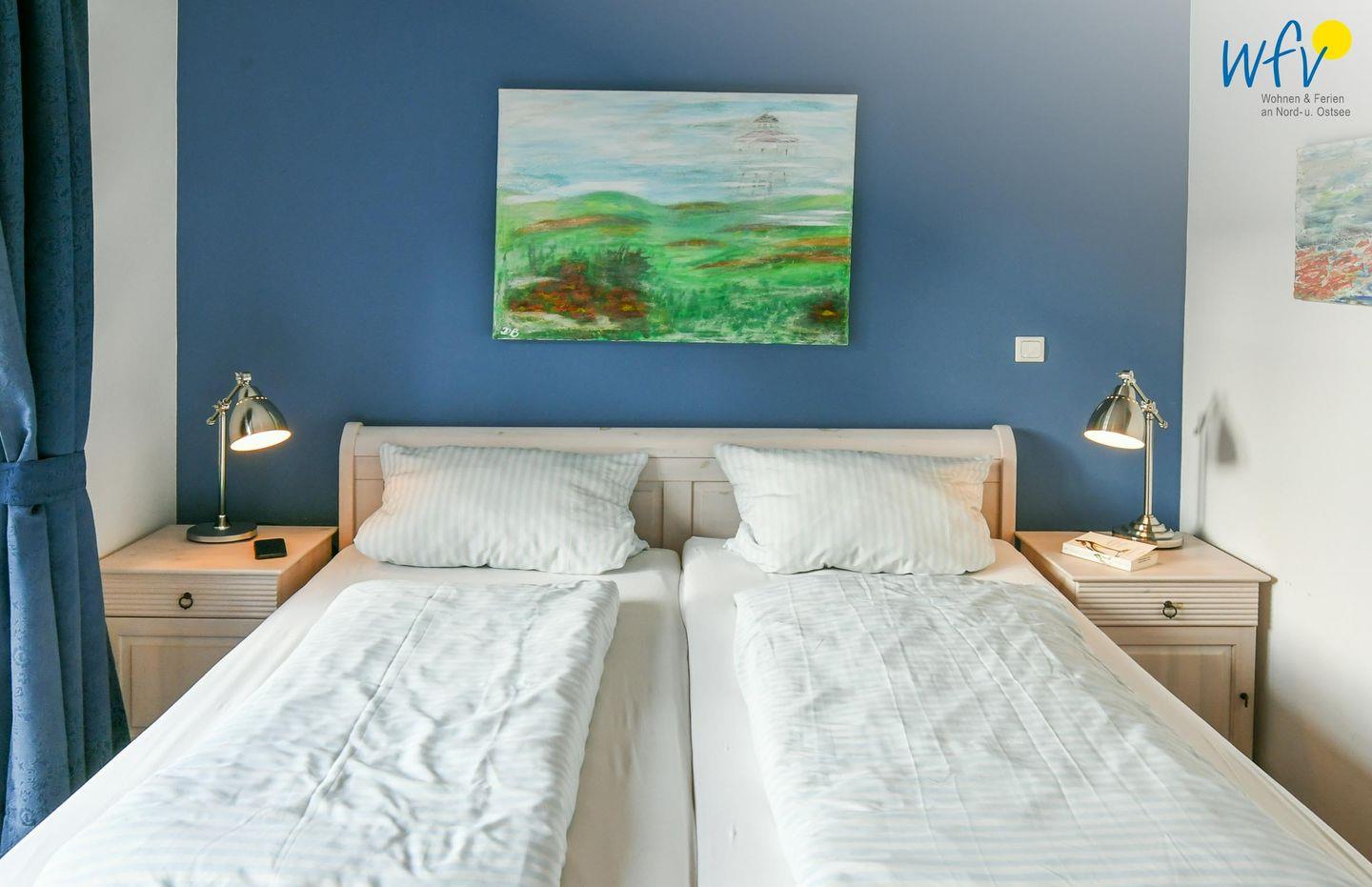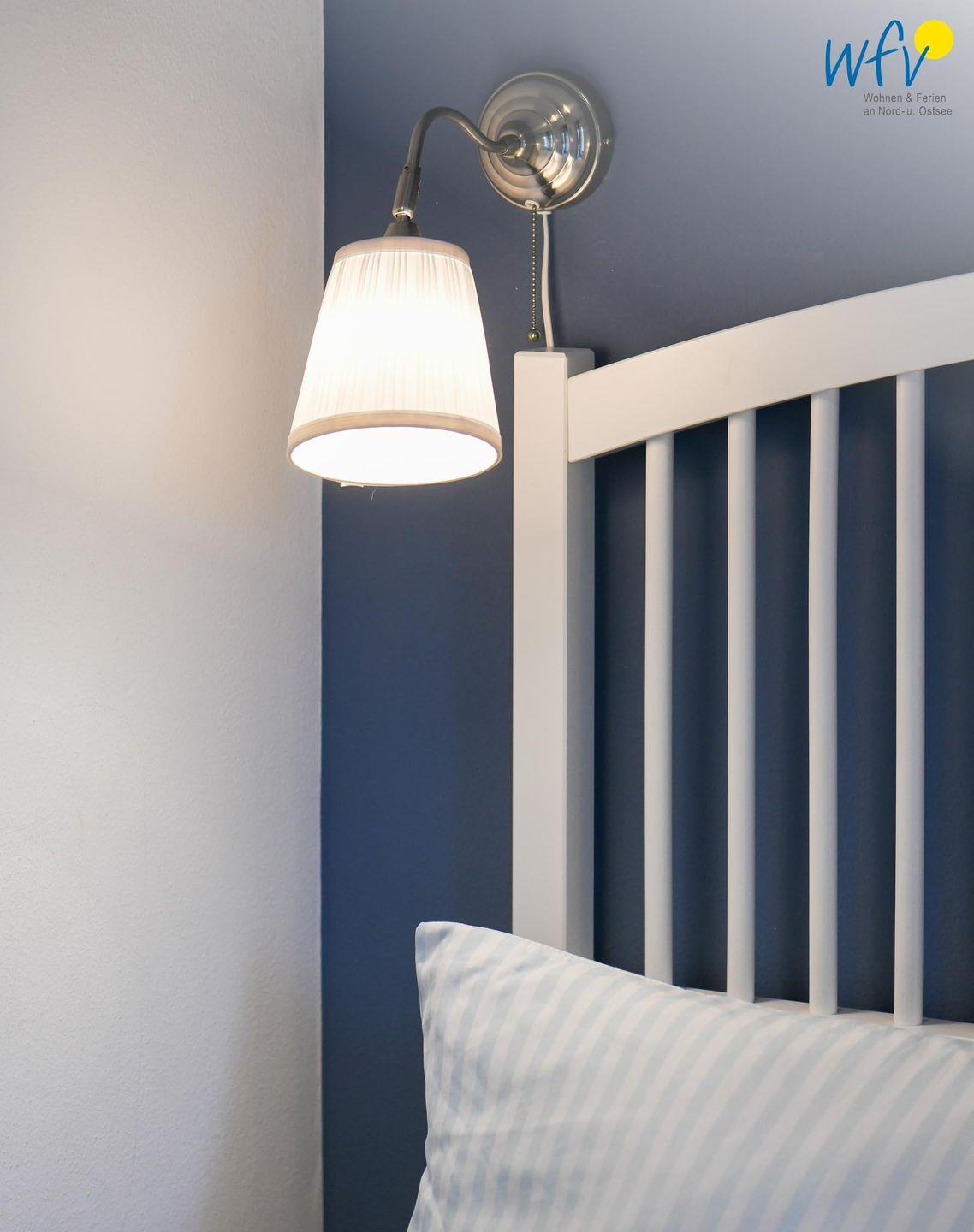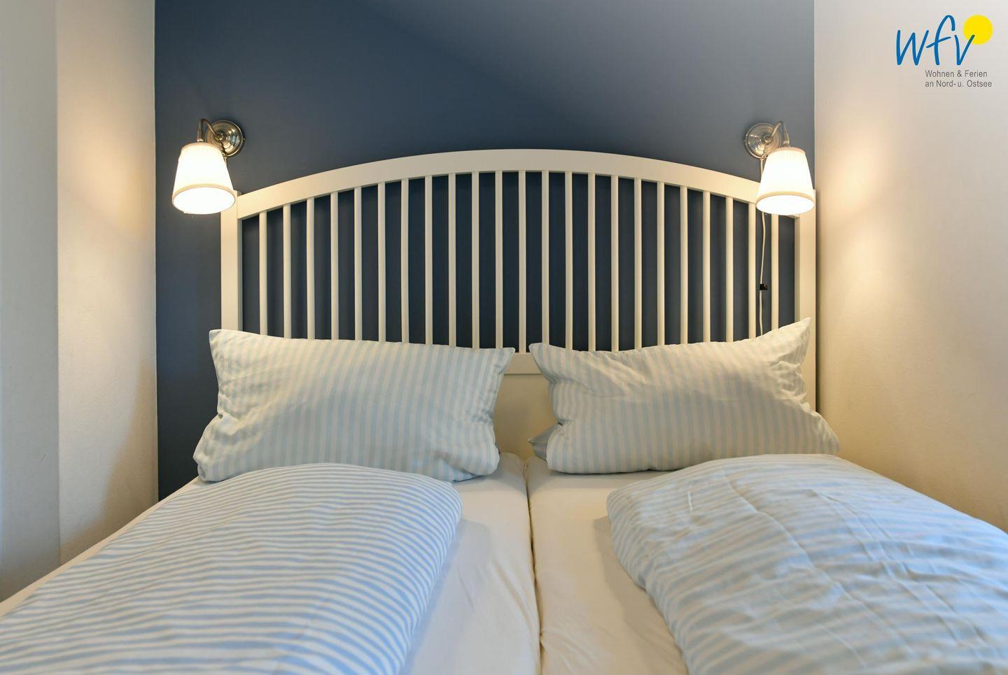 Zwei separate und freundlich eingerichtete Schlafzimmer mit Doppelbett (180 x 200 cm + 160 x 200 cm) bieten Gelegenheit zum Rückzug und versprechen eine angenehme Nachtruhe. Komfortable Leselampen am Bett ermöglichen gemütliche Stunden mit der Urlaubslektüre.