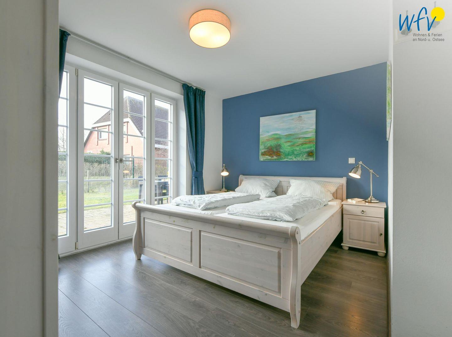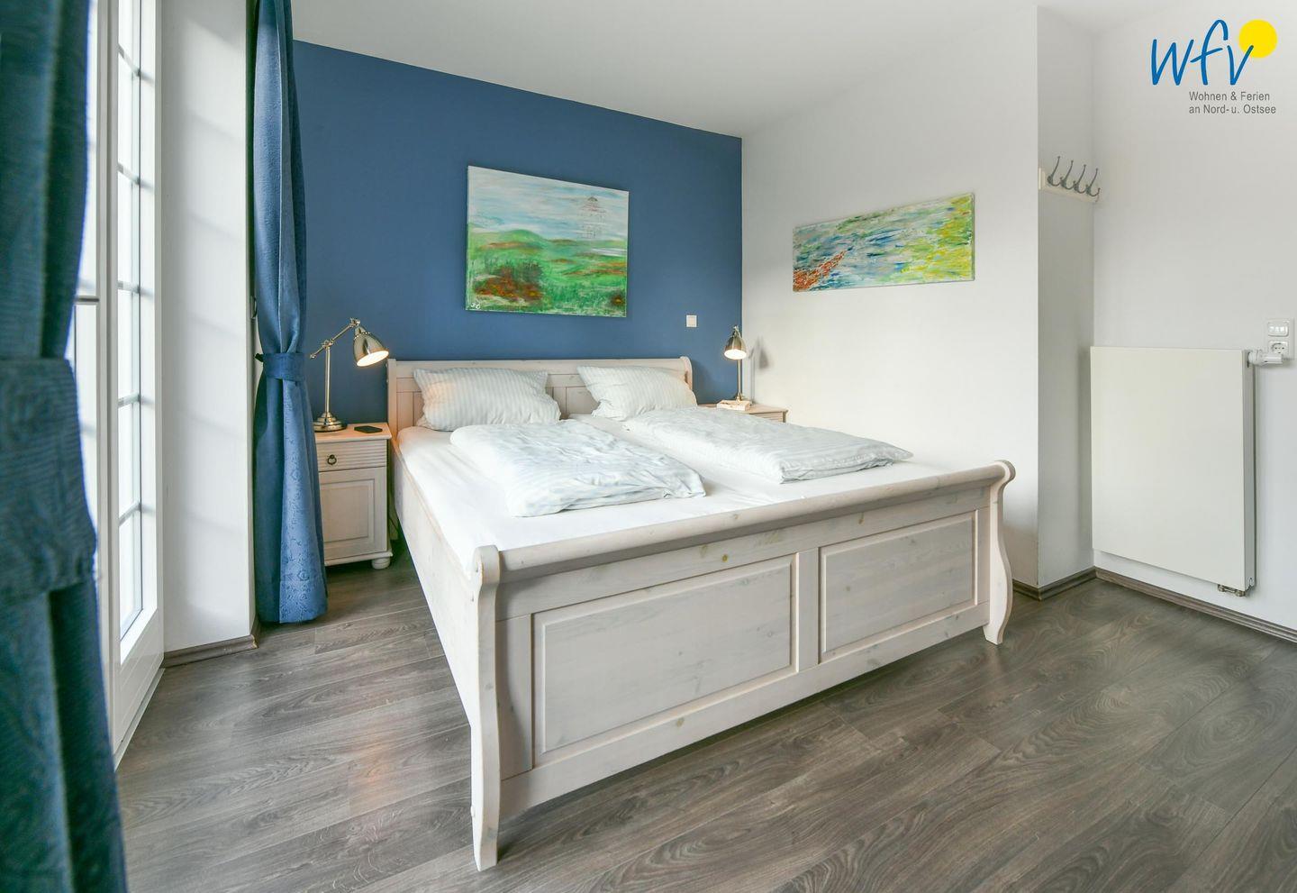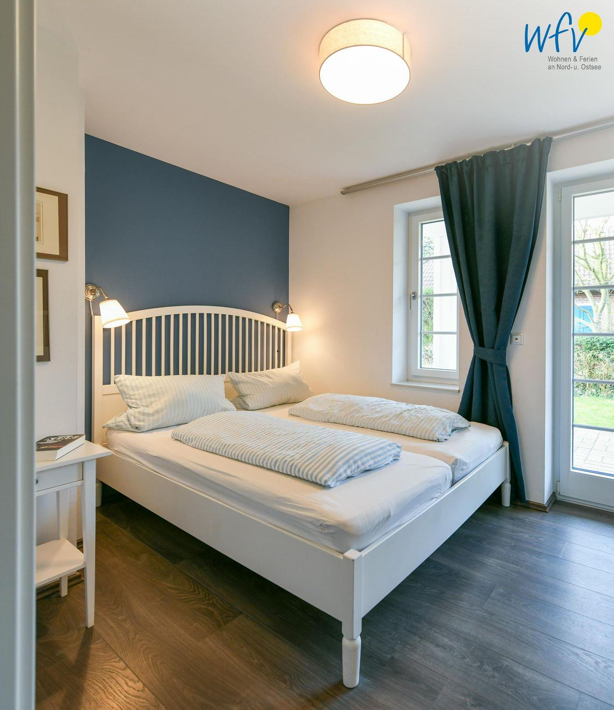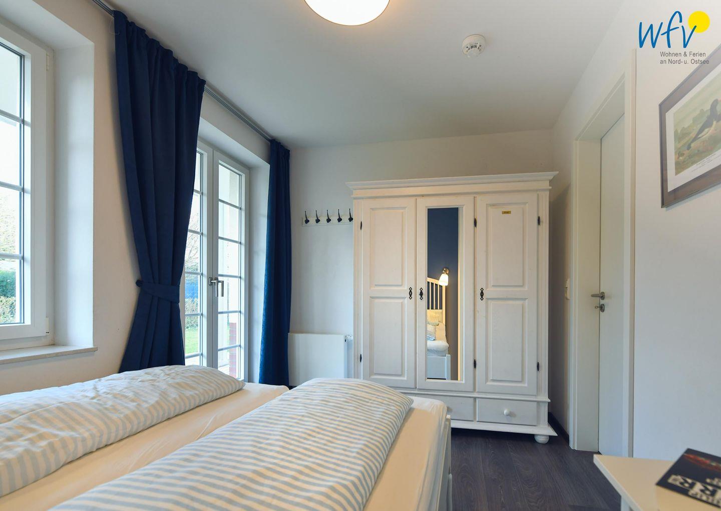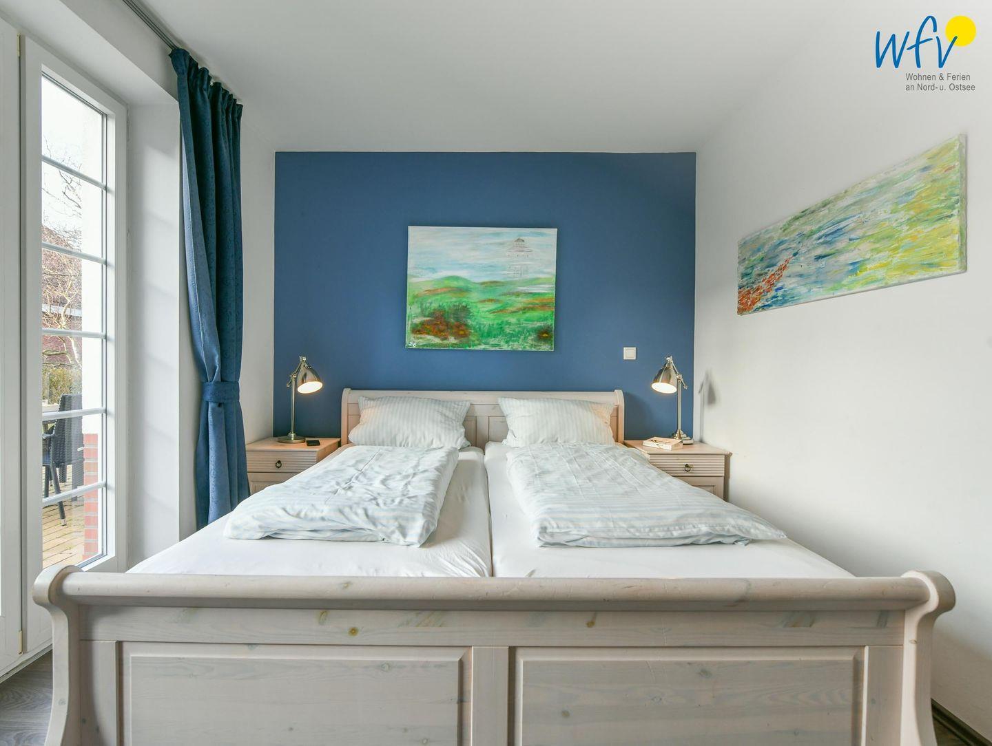 Zwei separate und freundlich eingerichtete Schlafzimmer mit Doppelbett (180 x 200 cm + 160 x 200 cm) bieten Gelegenheit zum Rückzug und versprechen eine angenehme Nachtruhe. Komfortable Leselampen am Bett ermöglichen gemütliche Stunden mit der Urlaubslektüre.