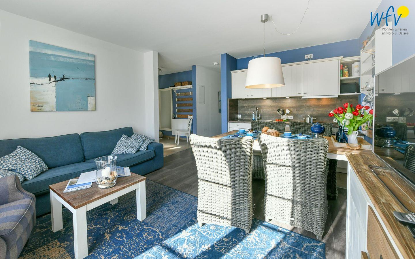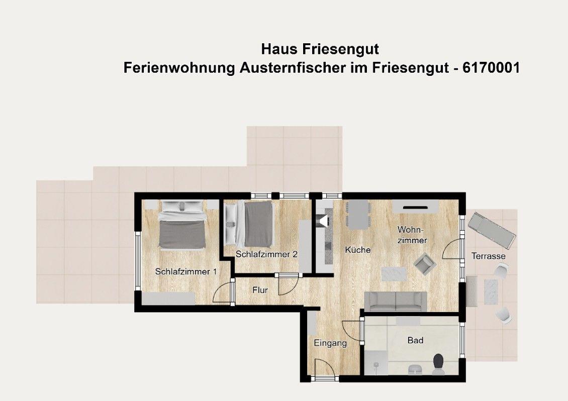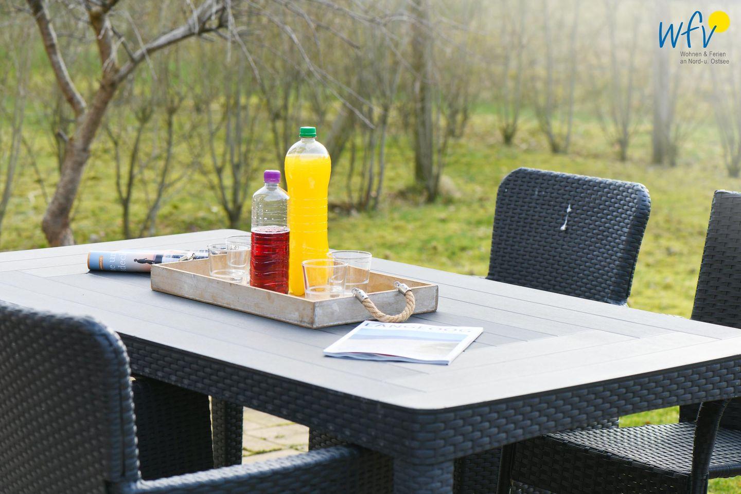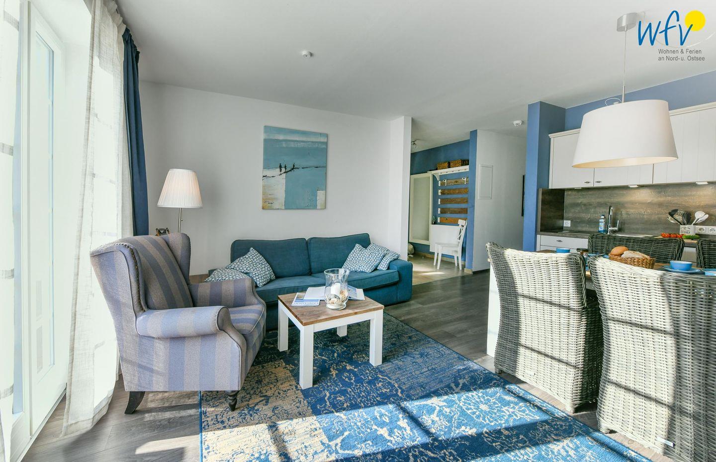 Die Parterrewohnung verfügt über insgesamt drei Zimmer, darunter ein Wohnraum und zwei separate Schlafzimmer, und eignet sich besonders für Paare und Familien. Wohltuende Nordseeluft buchen Sie bei uns inklusive: Drei sehr schöne wohnungseigene Terrassen in verschiedene Himmelsrichtungen laden zum ausgiebigen Entspannen ein. Mit Gartenmöbeln, Sonnenliegen und Strandkorb können Sie hier wunderbar beisammen sitzen, gemütlich essen, lesen und den Urlaubtag genießen. Teilweise sind die Terrassen überdacht, sodass auch ein Aufenthalt bei leicht regnerischem Wetter möglich ist. Ein angrenzender großer und exklusiver Gartenbereich von 190 m² bietet Platz zum Spielen und zum Verweilen im Freien.
