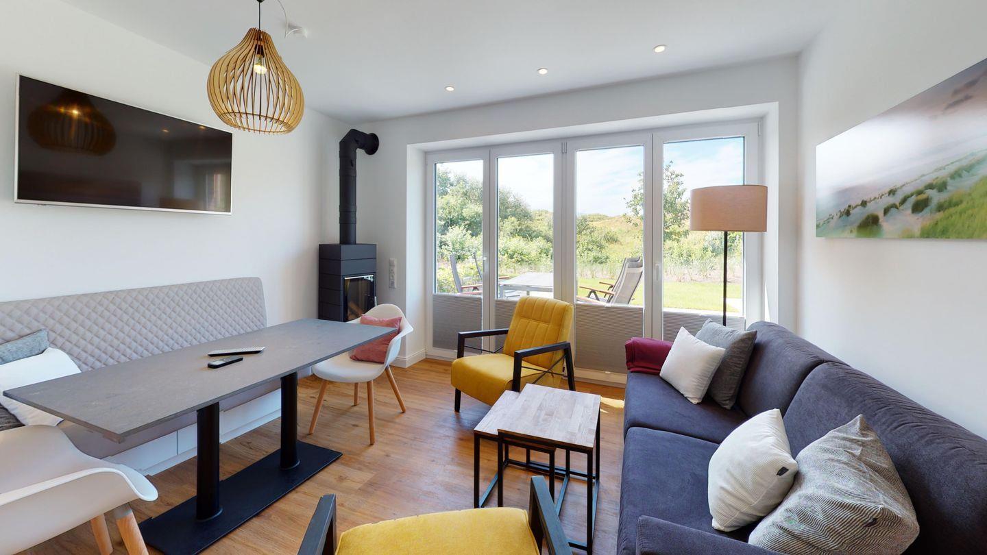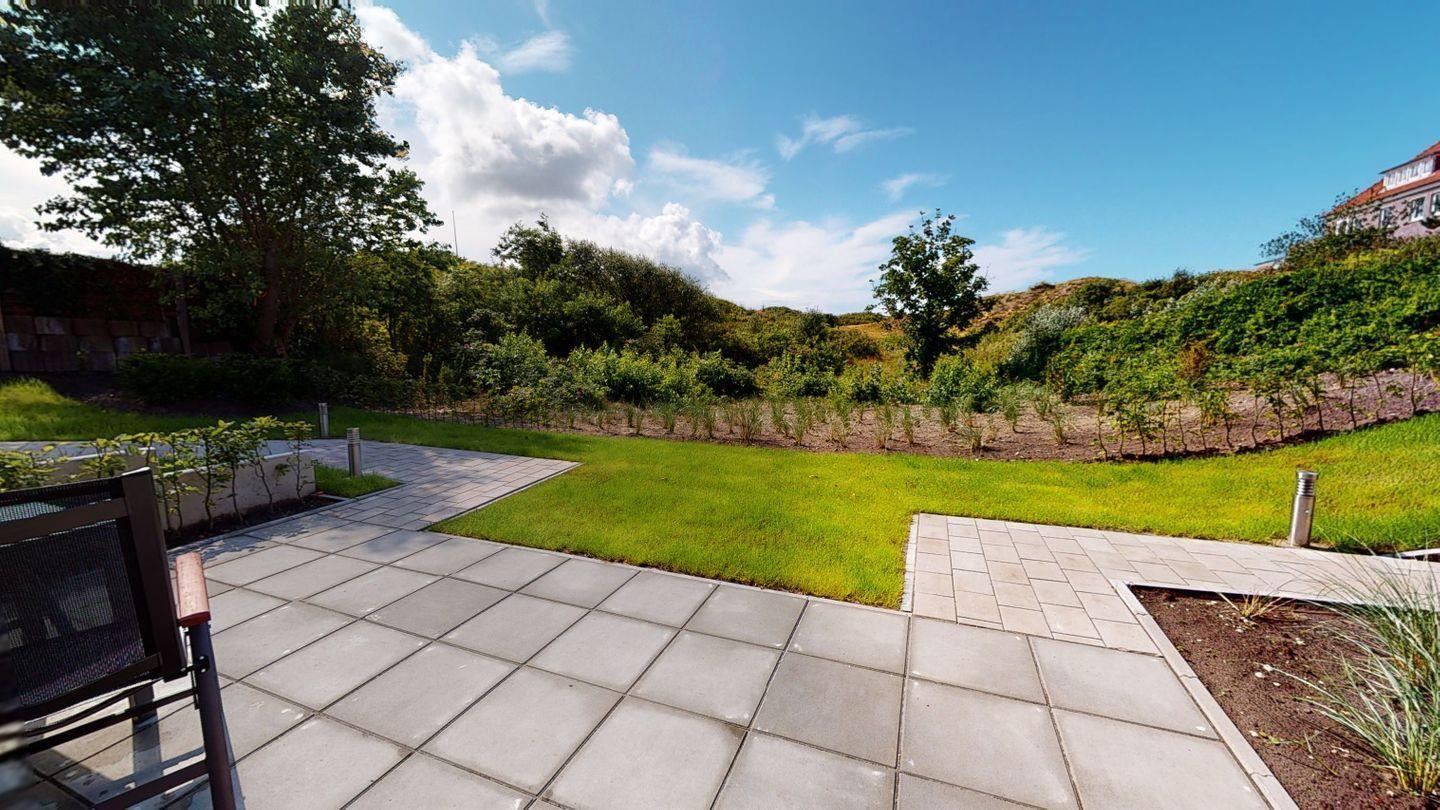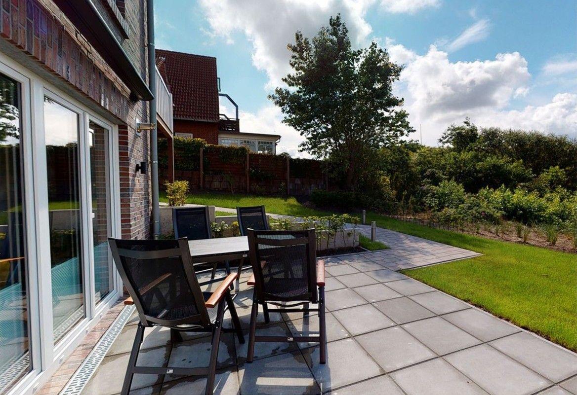 Von der möblierten Terrasse aus, genießen Sie einen unverbauten Dünenblick - inklusive Meeresrauschen.