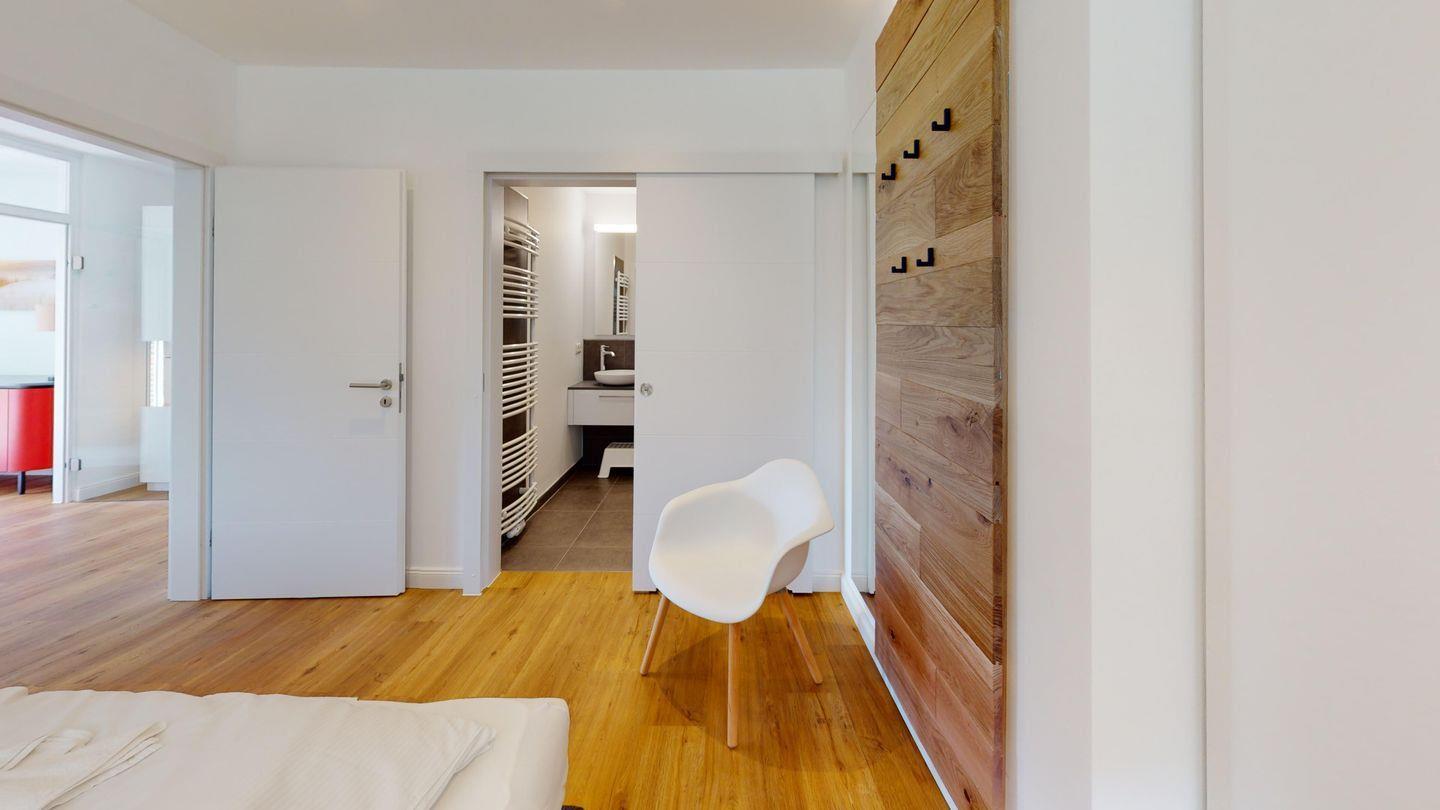 Die Wohnung ist mit Echtholzparkett und Fußbodenheizung ausgestattet, sie hat eine möblierte Terrasse mit unverbautem Dünenblick - inklusive Meeresrauschen.