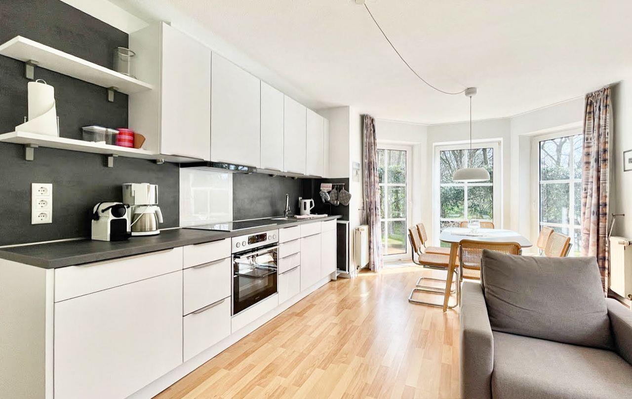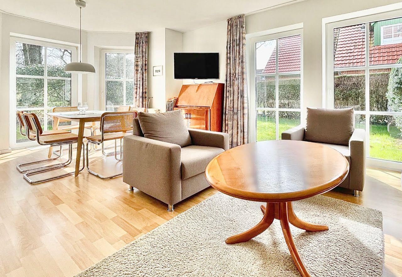 Butendiek: gemütliche 48 m² große Ferienwohnung, sehr ruhig und idyllisch in einer kleinen Nebenstraße. Die Ferienwohnung verfügt über einen hell und lichtdurchfluteten geräumigen Wohn- und Essbereich mit offener Küche. Im Wohnzimmer befindet sich auch eine Schlafcouch. Das schöne Schlafzimmer ist mit einem Doppelbett ausgestattet.