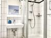 Das Bad verfügt über einen Waschtisch, eine Dusche und WC.