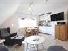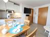 Das 45 m² große Ferienappartement 'Magellan 2' bietet einen Wohn- Essbereich mit offener Küche sowie einen Essplatz und eine gemütliche Couchecke mit TV und Hifi-Anlage.