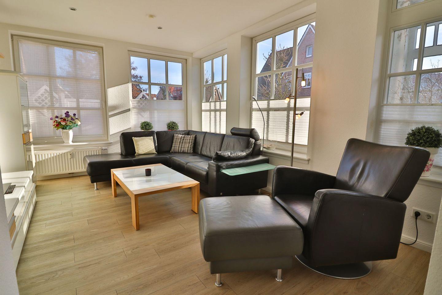 Das komfortable und lichtdurchflutete Wohnzimmer lädt zu gemütlichen Abenden ein: auf dem hochwertigen Ledersofa oder -sessel können Sie es sich nach einer langen Strandwanderung gemütlich machen, Fernseher, HiFi-Anlage, Spiele und eine Vielzahl von Büchern tragen zu Ihrer Unterhaltung auch bei Schietwetter bei. Ein Schreibtisch ist in einem der Schlafzimmer ebenfalls vorhanden, wenn Sie auch im Urlaub einen Arbeitsplatz nutzen möchten. Kostenloses WLAN steht Ihnen dabei selbstverständlich auch zur Verfügung.