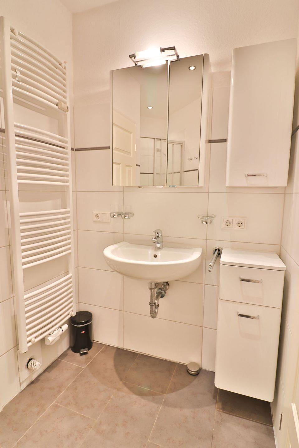 Das Badezimmer ist mit WC, Waschbecken sowie einer Dusche ausgestattet. Im angrenzenden Abstellraum stehen Ihnen eine Waschmaschine und ein Trockner zur Eigennutzung zur Verfügung. Ein Set Bettwäsche und Handtücher pro Person sind bereits inklusive, was Ihre Anreise erleichtert. Auch der kontaktlose Check-in und Check-out über einen Schlüsseltresor ermöglicht Ihnen Flexibilität.