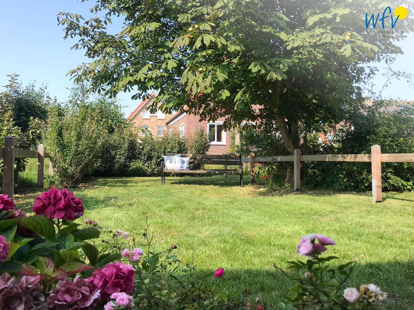 Vom Wohnbereich aus gelangen Sie auf die großzügige und möblierte West-Terrasse mit Nachmittagssonne; ein weiteres Plätzchen zum Verweilen finden Sie im direkt angrenzenden Garten. Perfekt, um auf der Gartenbank den ersten Morgenkaffee zu genießen, auf der Sonnenliege zu entspannen oder den Urlaubstag mit einem Grillabend ausklingen zu lassen.