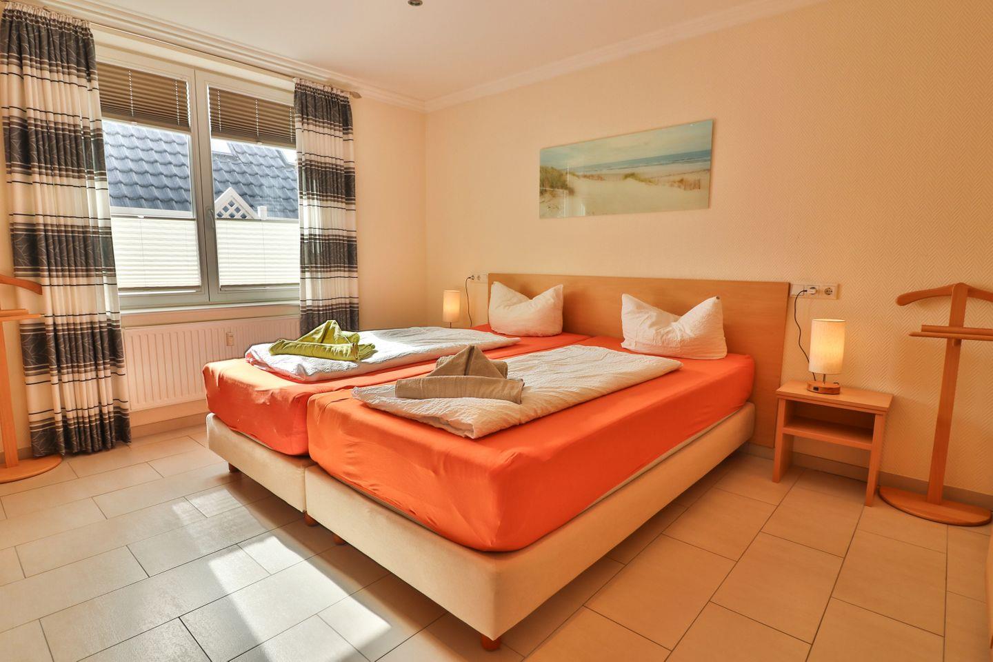 Im Schlafzimmer finden Sie für erholsame Inselnächte ein komfortables Boxspringbett (180 x 200 cm). Auch ein zweiter Fernseher befindet sich in diesem Raum.