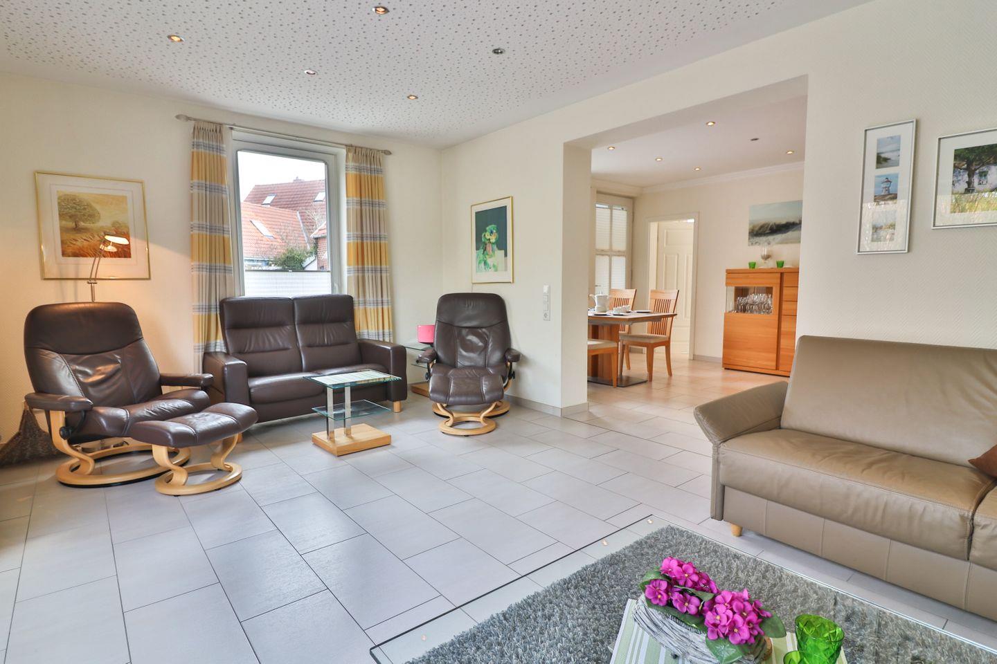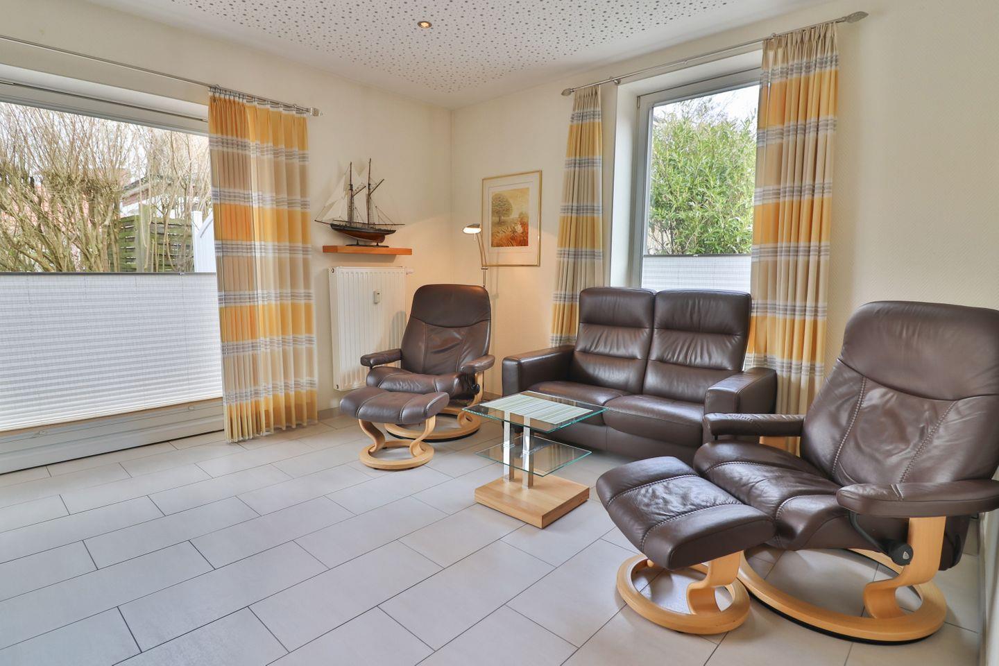Ein besonderes Plus ist die umzäunte Terrasse mit Gartenmöbeln und Strandkorb. Hier genießen Sie Ihre Auszeit im geschützten Außenbereich ganz entspannt bei schönstem Nordseewetter.