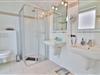 Das Badezimmer verfügt über eine bodengleiche Dusche, WC und Waschbecken. Ein Haartrockner sowie ein Kosmetikspiegel sind ebenfalls vorhanden. Ein Set Bettwäsche und Handtücher pro Person sind im Preis inklusive. Für längere Aufenthalte praktisch: Bügeleisen, Bügelbrett, Waschmaschine und Trockner zur Eigennutzung.