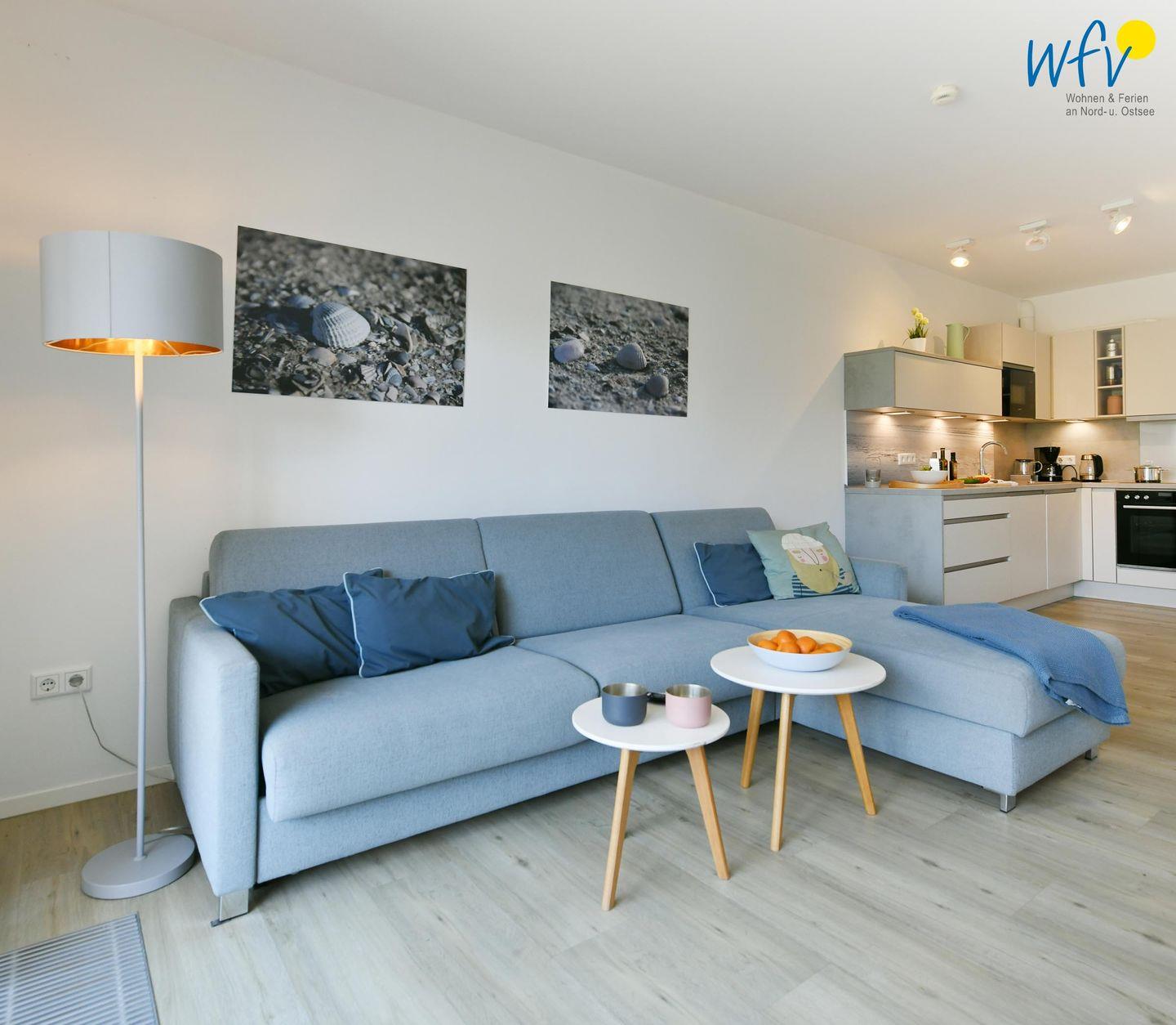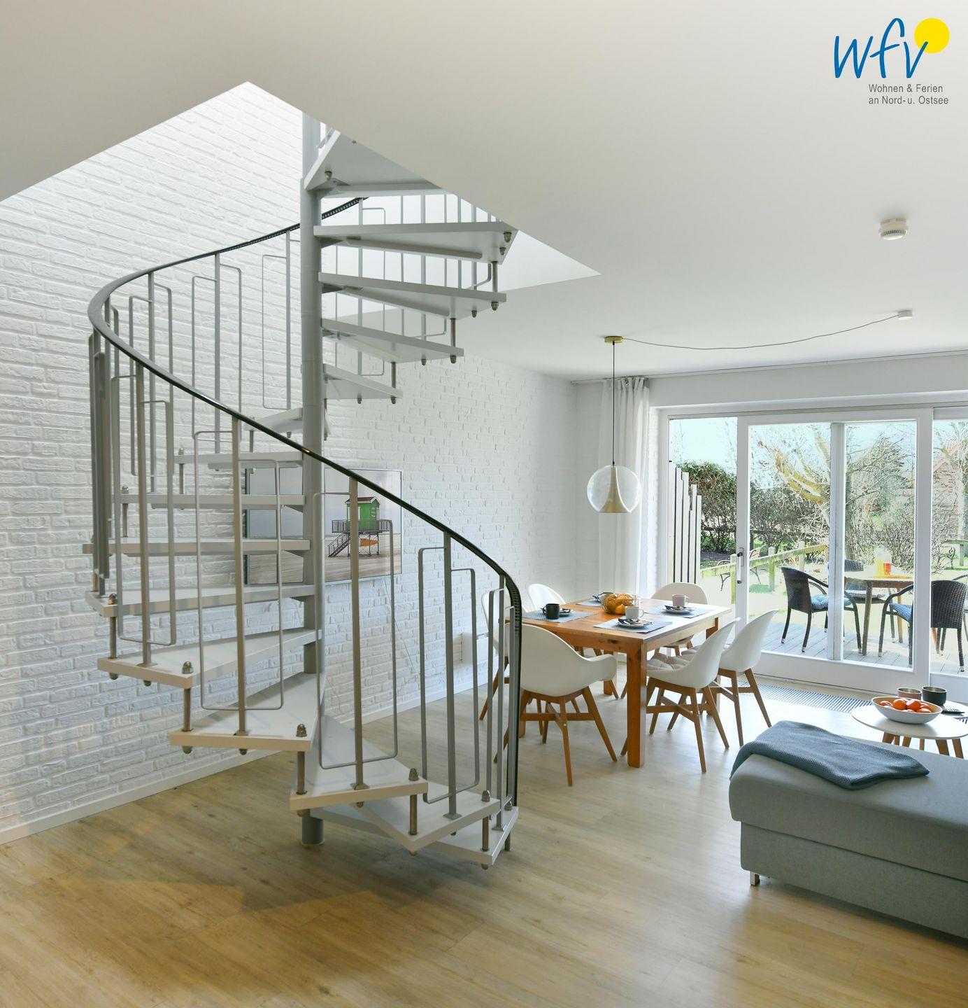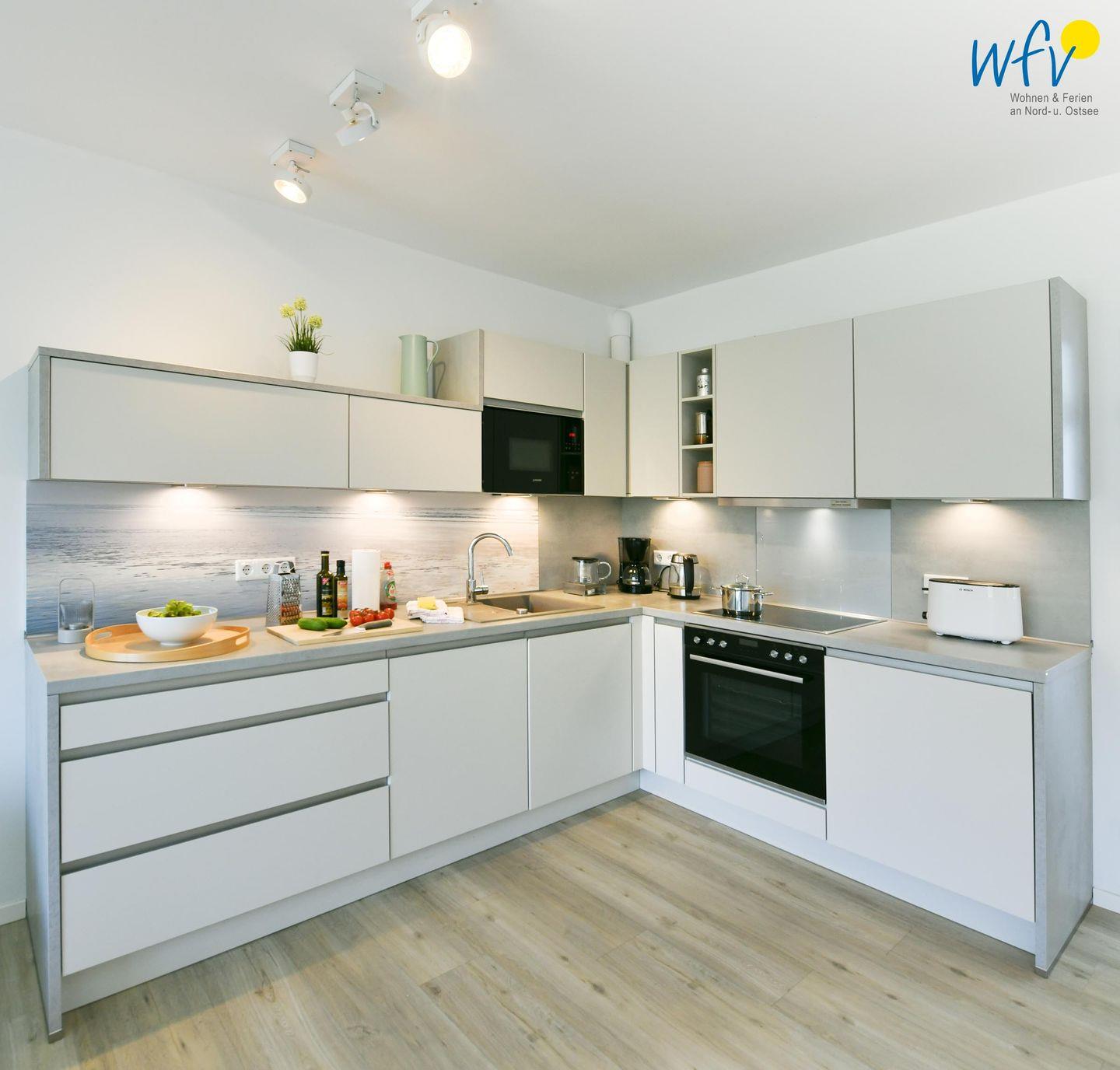 Die moderne Maisonettewohnung verfügt über 75 m² und erstreckt sich über zwei Etagen (EG und OG). In der unteren Etage empfängt Sie ein offener Wohnraum mit gemütlicher Couchecke und TV. Auch die offene moderne Küche sowie ein Essplatz mit Gartenblick tragen zum Wohlfühlambiente bei. Zur Ausstattung gehören hochwertige Küchengeräte - u.a. ein Induktionsherd, ein Backofen, eine Mikrowelle und ein Geschirrspüler. Kaffeegourmets können zwischen einer klassischen Filterkaffeemaschine und einem Espressokocher wählen. Nach einem Strandspaziergang macht ein Waffeleisen eine spontane Kaffeetafel ohne viel Aufwand möglich.