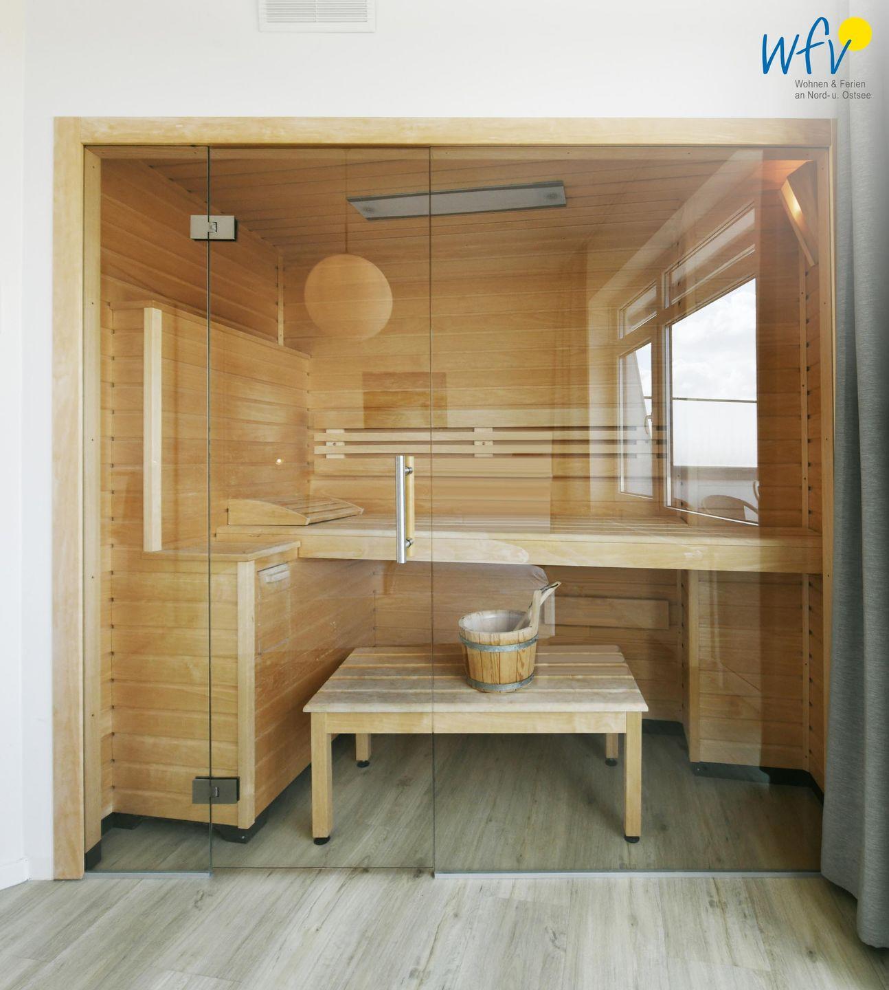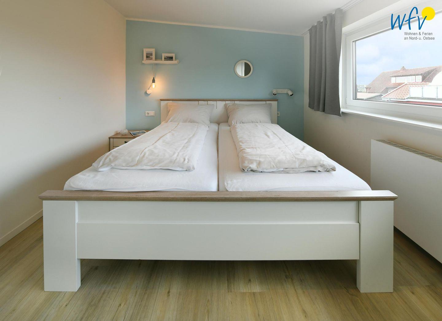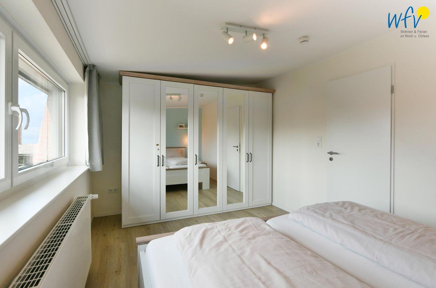 Eine Wendeltreppe führt zu den zwei separaten Schlafzimmern im Obergeschoss. Beide Zimmer sind mit einem komfortablen Doppelbett ausgestattet (180 x 200 cm bzw. 160 x 200 cm) und großzügigen Kleiderschränken für die Urlaubsgarderobe. Im nach Osten und zum Sonnenaufgang ausgerichteten Raum erwartet Sie bei breiter Fensterfront und verspiegeltem Schrank ein traumhafter Blick auf die Dünenlandschaft. Eine zusätzliche Besonderheit dieses Raumes ist die Sauna en suite, die mit offener Glasfront für ein weites Raumgefühl sorgt und Ihnen ebenso mit Blick in die Dünenlandschaft exklusiven Wellness-Komfort bietet. Das Highlight ist sicherlich der angrenzende windgeschützte und zur Dünenlandschaft ausgerichtete Balkon - sogar das Meer hören Sie hier bei Brandung rauschen! Perfekt, um den ersten Morgenkaffee oder ein ausgiebiges Frühstück zu genießen oder bei Dunkelheit den reichen Sternenhimmel zu beobachten.