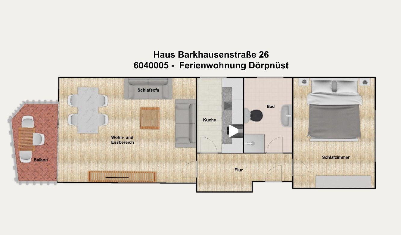 Entdecken Sie die charmante und strandnahe „Ferienwohnung Dörpnüst" im "Haus Barkhausenstraße 26" auf Langeoog. Diese gemütliche Unterkunft bietet Platz für 3 Personen. Genießen Sie die wohlige Atmosphäre mit separatem Schlafzimmer und geräumigem Wohnraum mit Essbereich. Die voll ausgestattete Küche lädt zum Kochen ein; ein möblierter Balkon ermöglicht entspannte Stunden im Freien. Wir wünschen Ihnen herrliche Tage an der Nordsee!